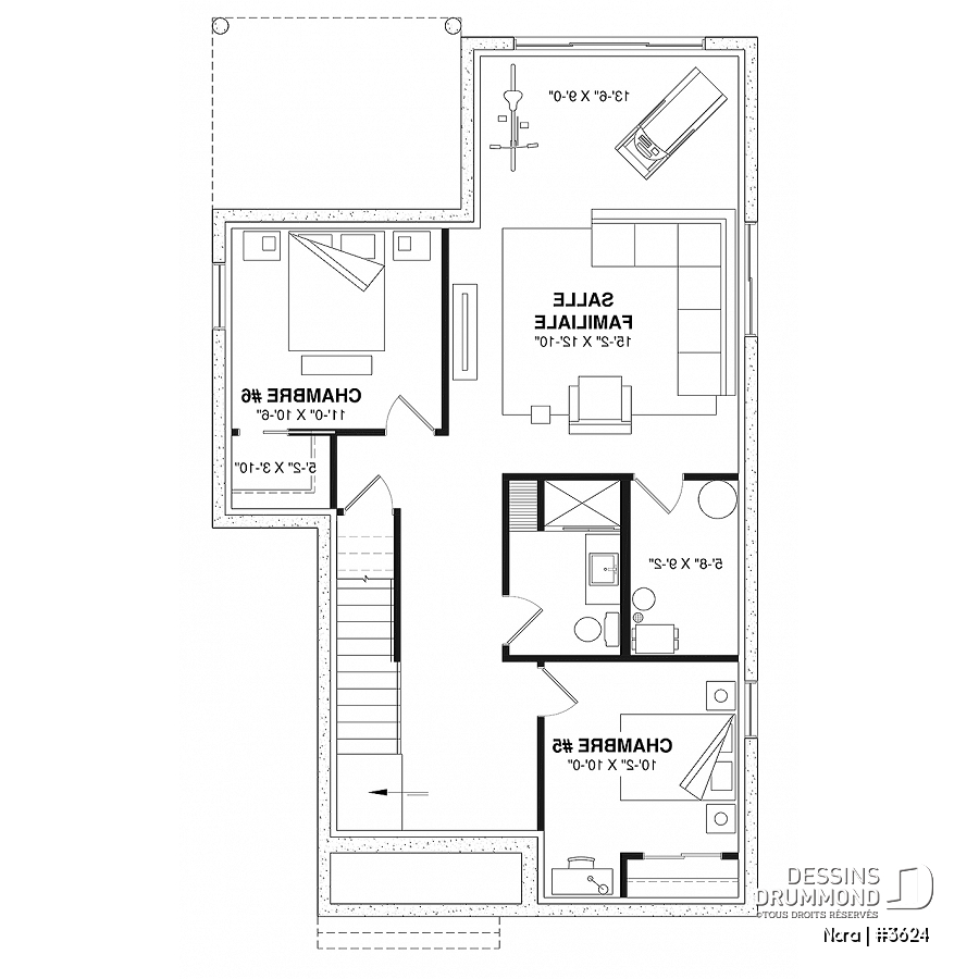 *Si vous souhaitez acheter le plan du sous-sol aménagé, tel que présenté sur la page de ce plan, veuillez sélectionner cette option dans le panier d'achat, dans la section "Sélectionner votre fondation". Si vous ne sélectionnez pas cette option, vous recevrez le sous-sol non fini, sans frais additionnel.