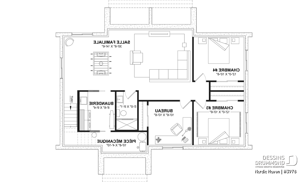 *Si vous souhaitez acheter le plan du sous-sol aménagé, tel que présenté sur la page de ce plan, veuillez sélectionner cette option dans le panier d'achat, dans la section "Sélectionner votre fondation". Si vous ne sélectionnez pas cette option, vous recevrez le sous-sol non fini, sans frais additionnel.