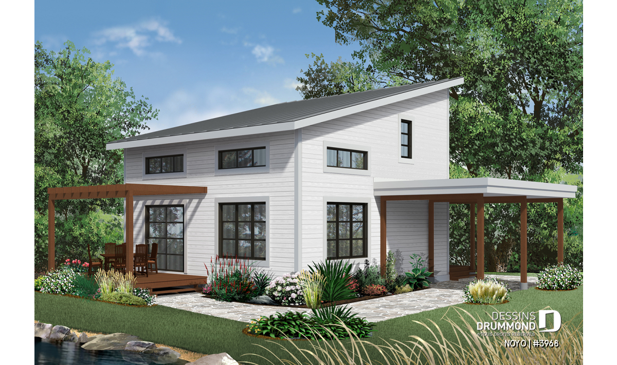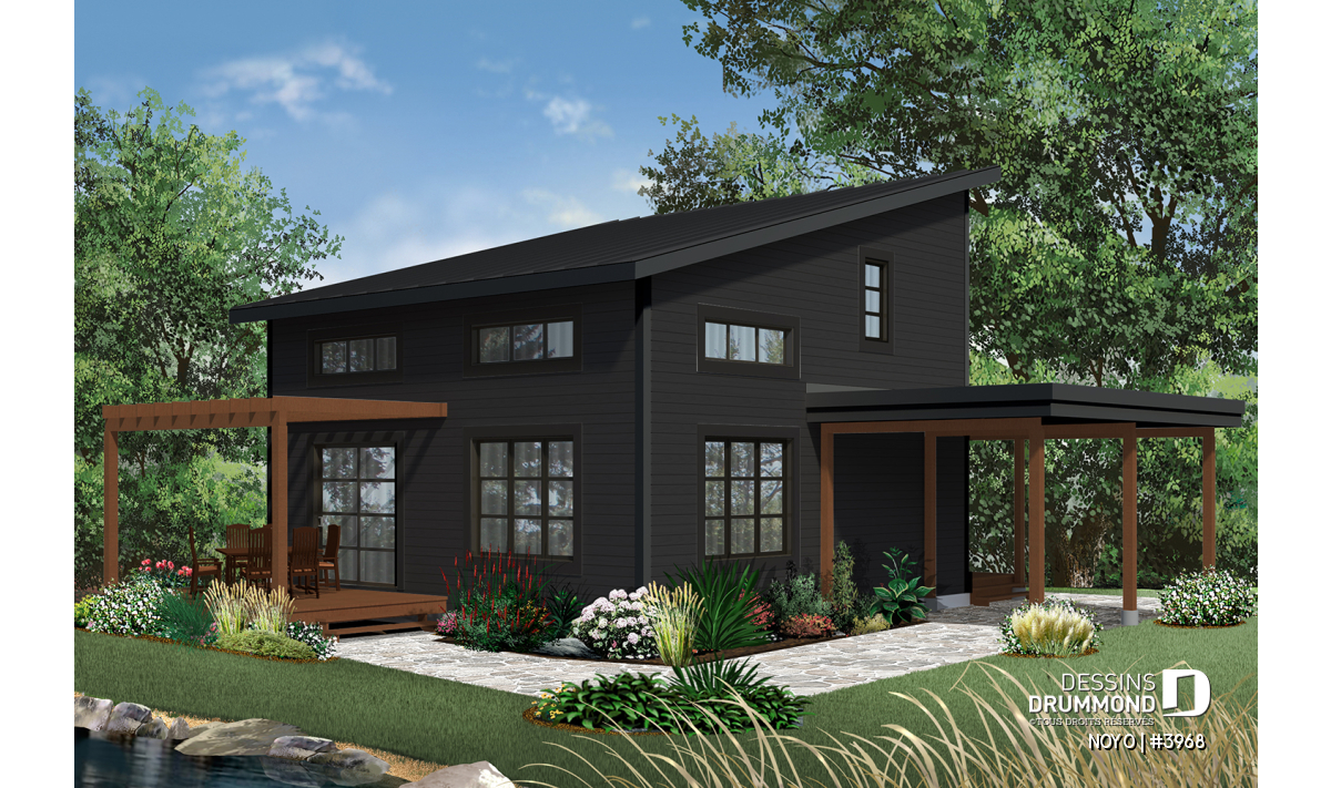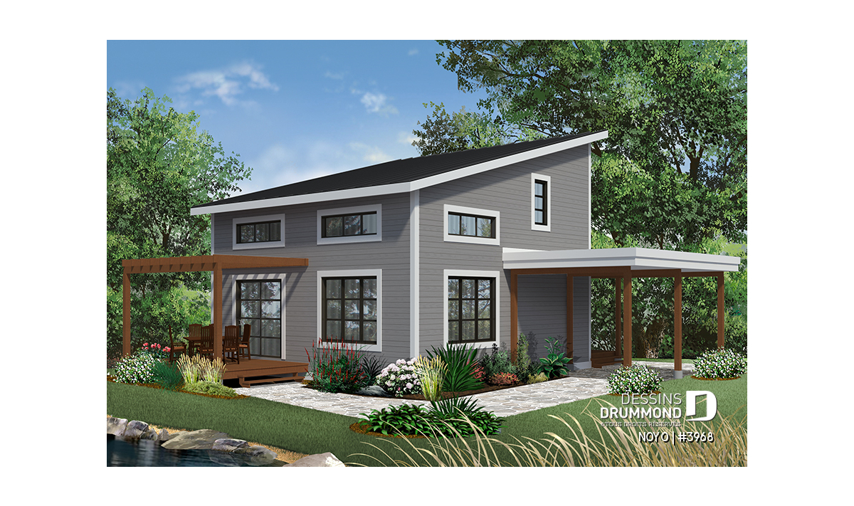 Version couleur no. 2 - Vue arrière - Chalet ou maison moderne, bon prix, espace ouvert, 2 chambres, balcon arrière semi-abrité - NOYO