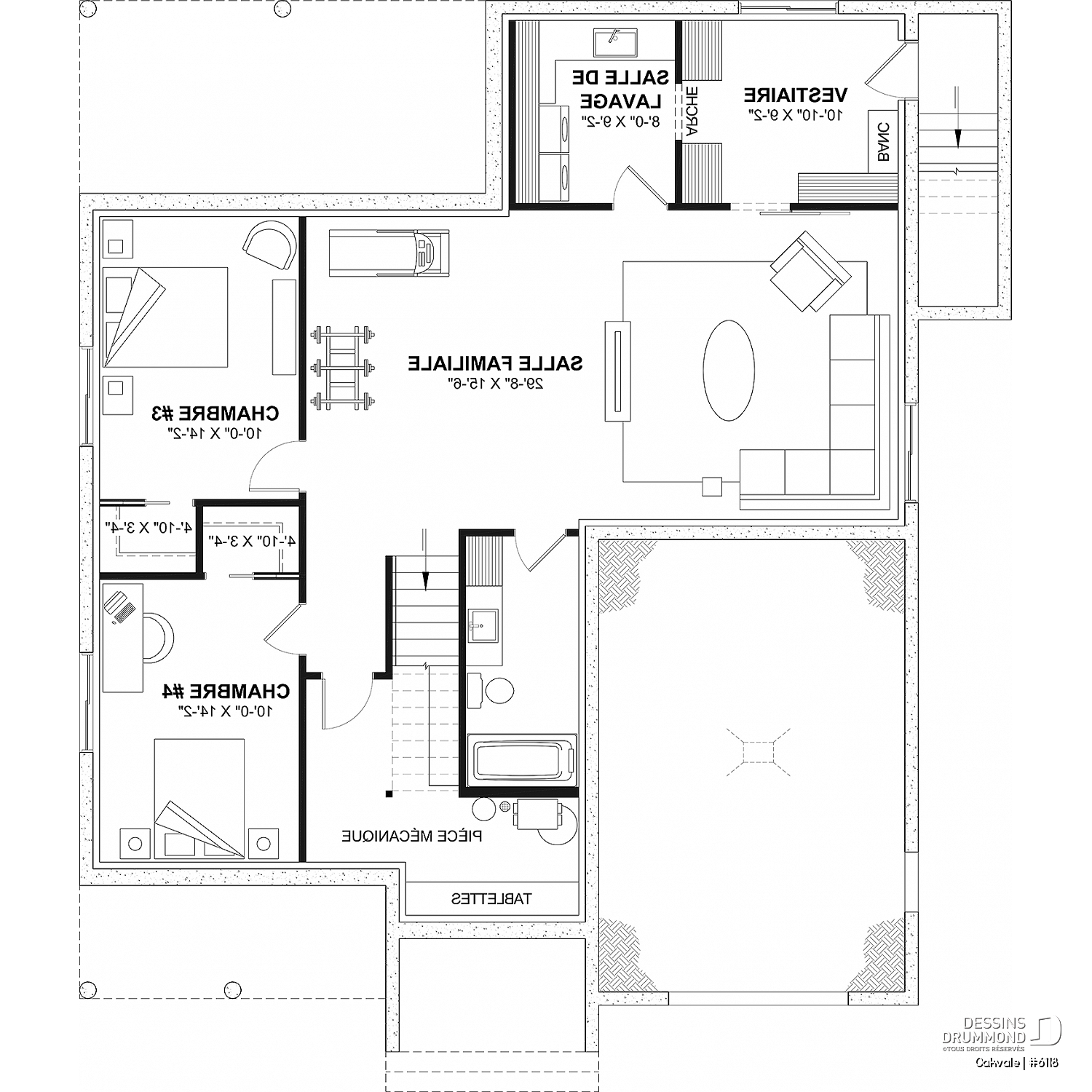 Tous les plans de Dessins Drummond ne peuvent être modifiés que par Dessins Drummond et ses agences reconnues; si vous faites modifier votre plan par une autre entreprise ou personne que Dessins Drummond, assurez-vous que cette entreprise ou personne détient une licence pour la modification de ce plan sinon, vous êtes passible de poursuite judiciaire au même titre que l'entreprise ou la personne avec qui vous avez fait affaires pour la modification ou la reproduction du plan.