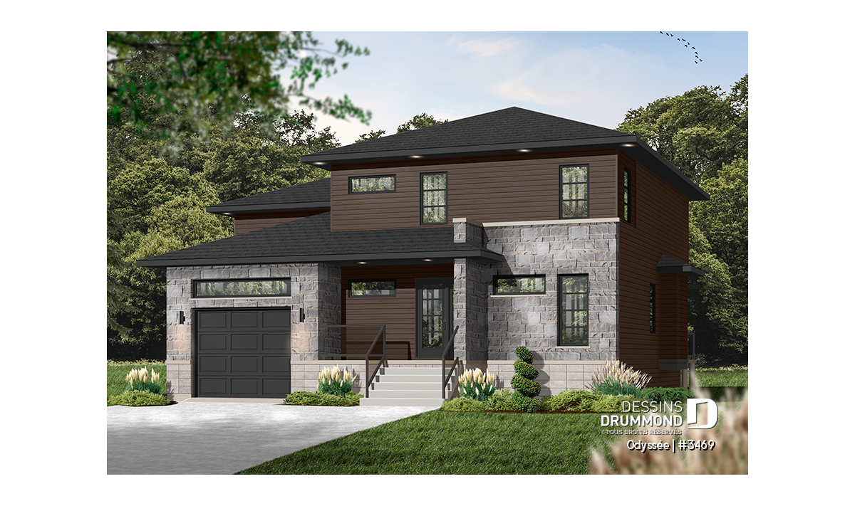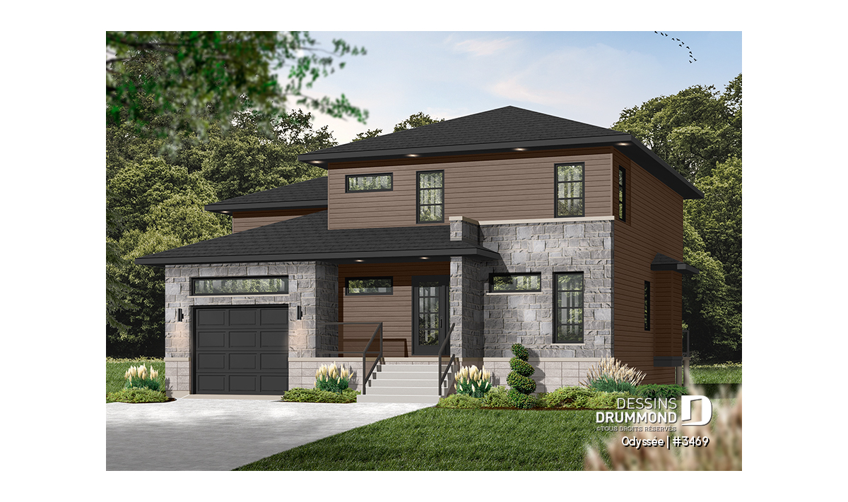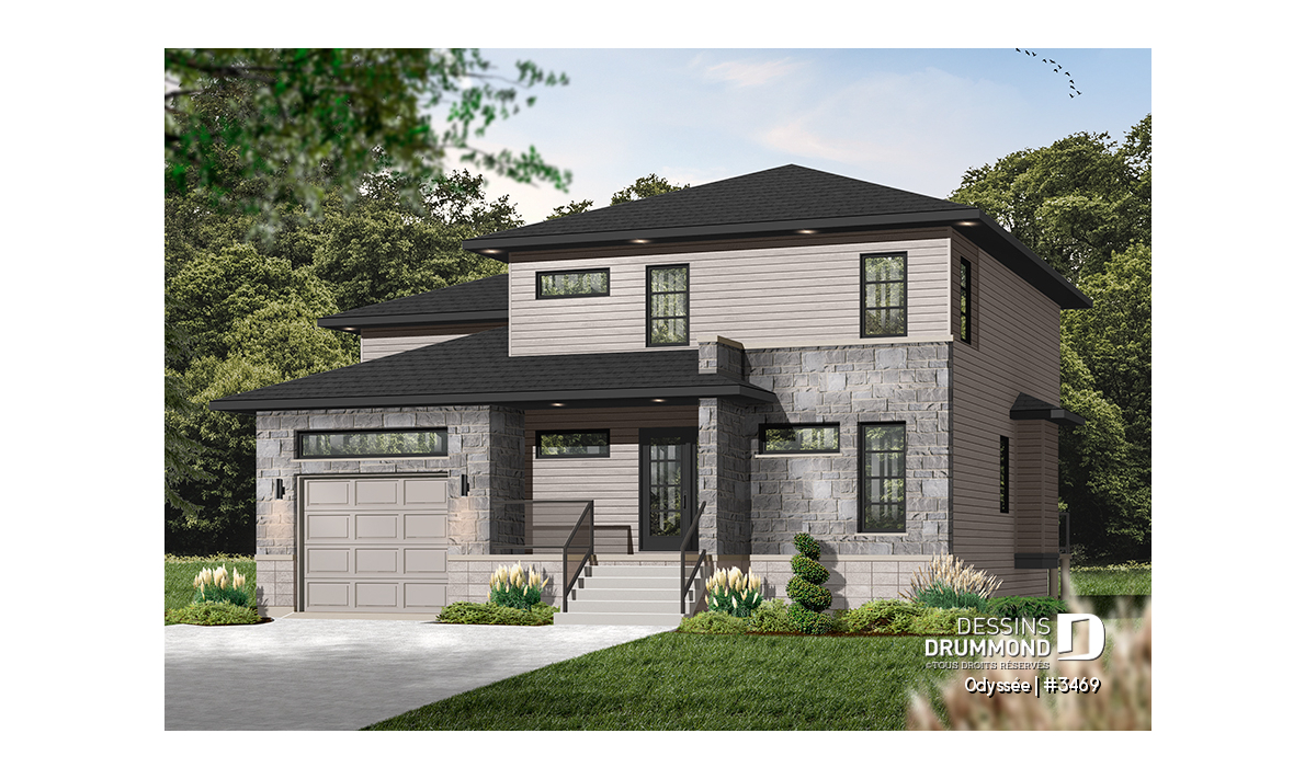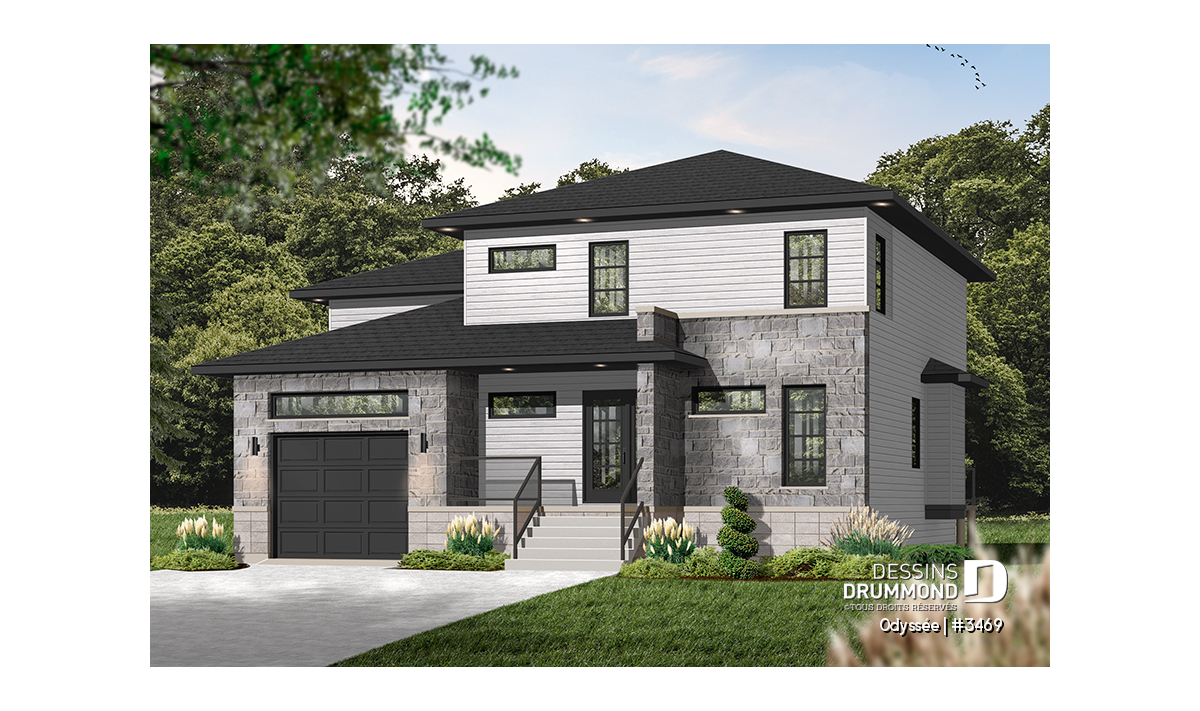 Maison contemporaine à deux étages avec garage, au design épuré et parfaitement adaptée aux familles modernes.