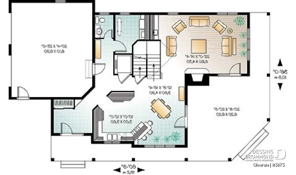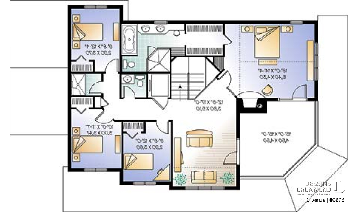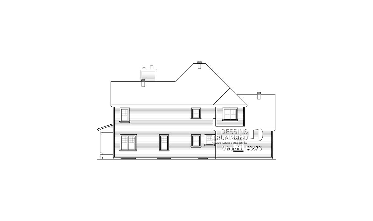Déjà grandement apprécié sous le numéro de plan 2837 de Dessins Drummond, celui-ci, avec l’addition d’à peine plus de 175pi2 habitables ( excluant le sous-sol et le garage ), propose l’ajout d’une quatrième chambre à l’étage, l’agrandissement de l’espace buanderie du rez-de-chaussée et l’aménagement facultatif d’un ascenseur facilitant l’accès aux trois planchers. Sans oublier, les 83pi2 de plus dont bénéficie le garage.