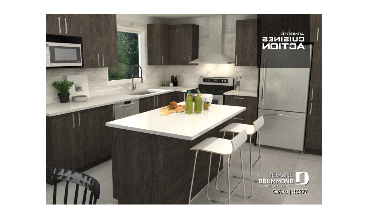 Cuisine avec îlot et garde-manger.