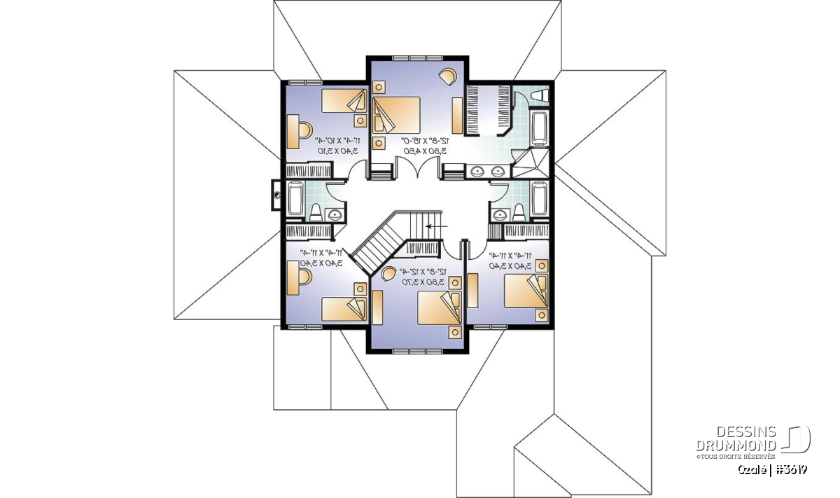 Étage - Plan de maison style Floride, 6 chambres, 5 salles de bain, 2 salons, foyer, grande cuisine, garage 3 voitures - Ozalé