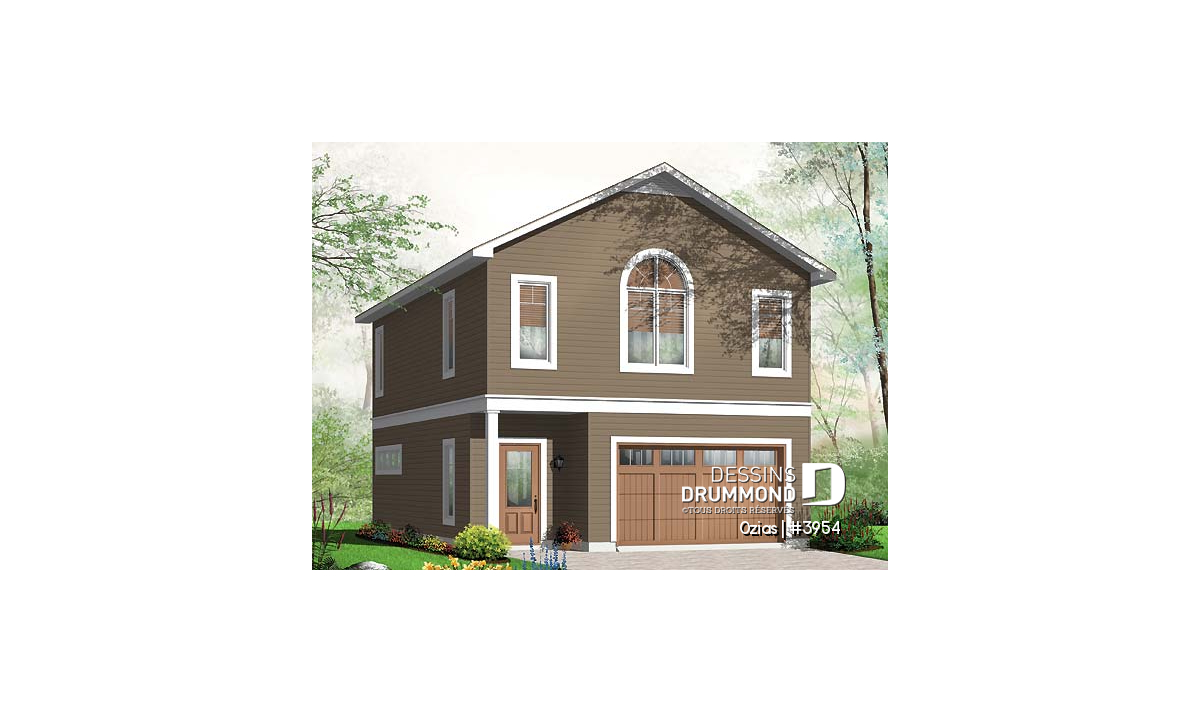 Plan de garage avec logement à l'étage, espace pour une voiture & atelier au r-d-c, plafond cathédral, écono