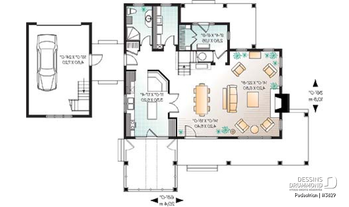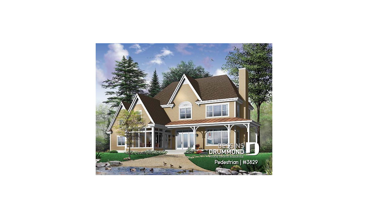 Aménagée d’abord et avant tout en fonction d’une vue sur l’arrière et plus particulièrement sur un plan d’eau, cette maison propose quatre belles façades, une galerie couverte à l’avant comme à l’arrière, un abri-moustiquaire pour manger en paix à l’extérieur et un garage avec rangement à l’étage qui vient combler le besoin en espace rangement étant donné l’absence d’un sous-sol toujours possible à ajouter selon les lieux.