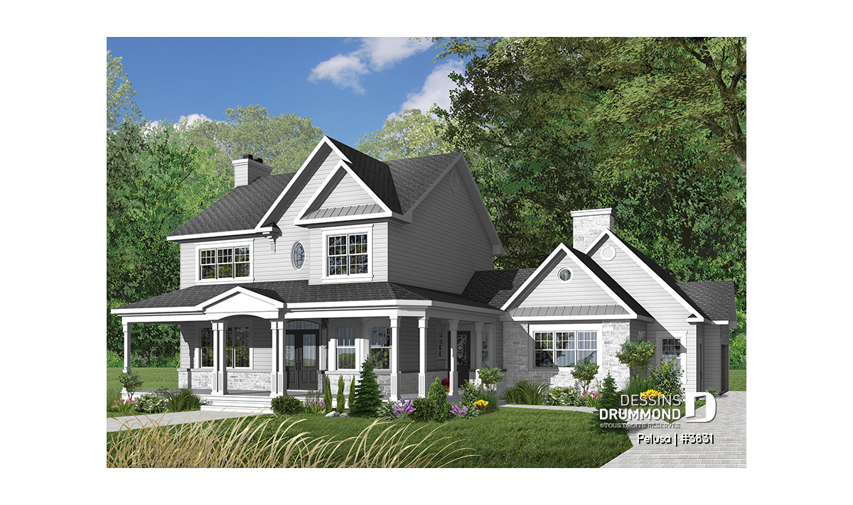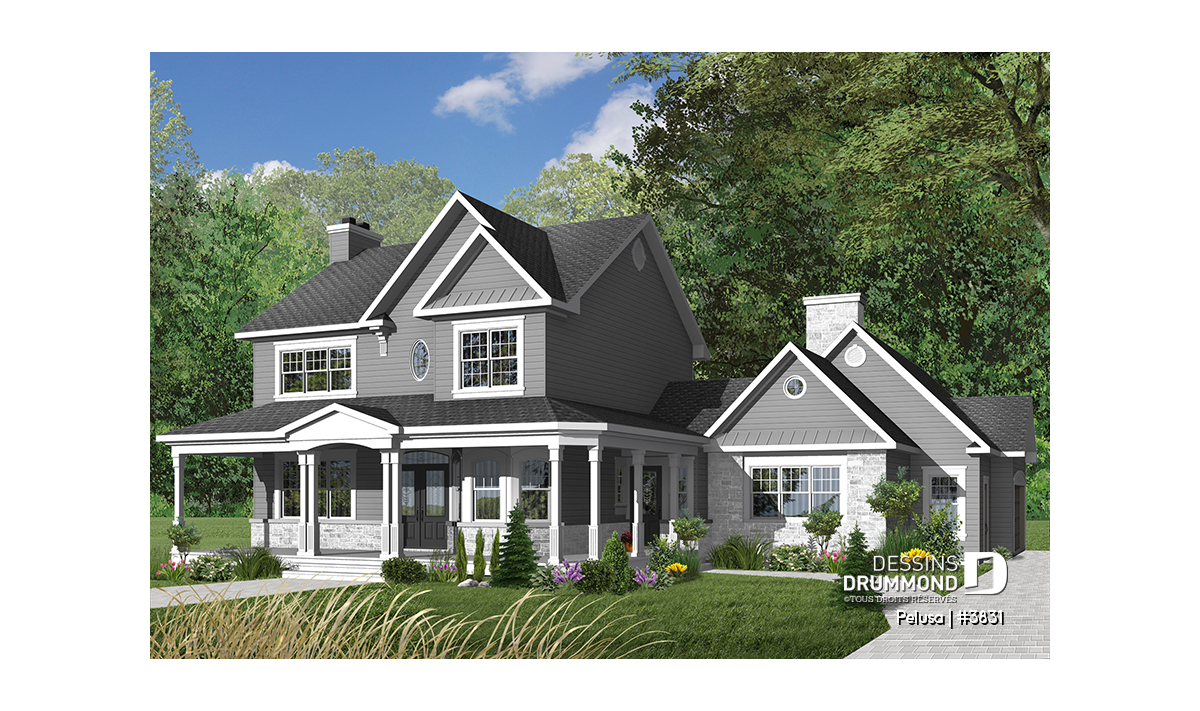 Plafond à 9pi au rez-de-chaussée, bureau à domicile, présence de deux foyers, espace boni accessible de la maison, grande galerie couverte à l'avant comme à l'arrière.