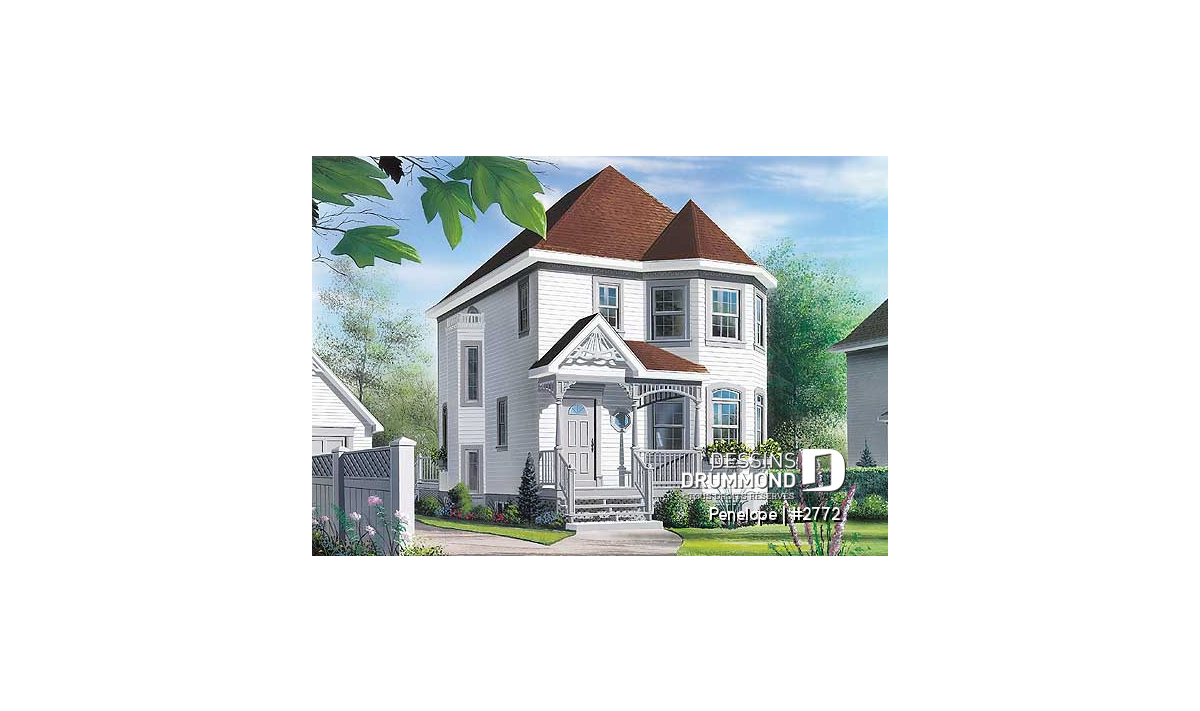 Vue avant - MODÈLE DE BASE - Plan de maison dinspiration victorienne, 3 chambres, cuisine fort logeable avec coin déjeuner, belle entrée - Penelope