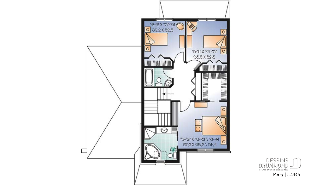 De plus, ce modèle suggère un volume attrayant pour terrains étroits avec seulement 36 pieds de largeur, un vestibule à l’avant, une garde-robe d’excellent format à chaque entrée (principale et du garage), une heureuse combinaison salle à manger et salle de séjour, un puits d’escalier attrayant avec ouverture centrale et aucune marche à angle, un secteur buanderie tout près du rez-de-chaussée ainsi que deux chambres secondaires dotées de très bons rangements et se partageant une seconde salle de bain à l’étage au plus grand plaisir des parents.