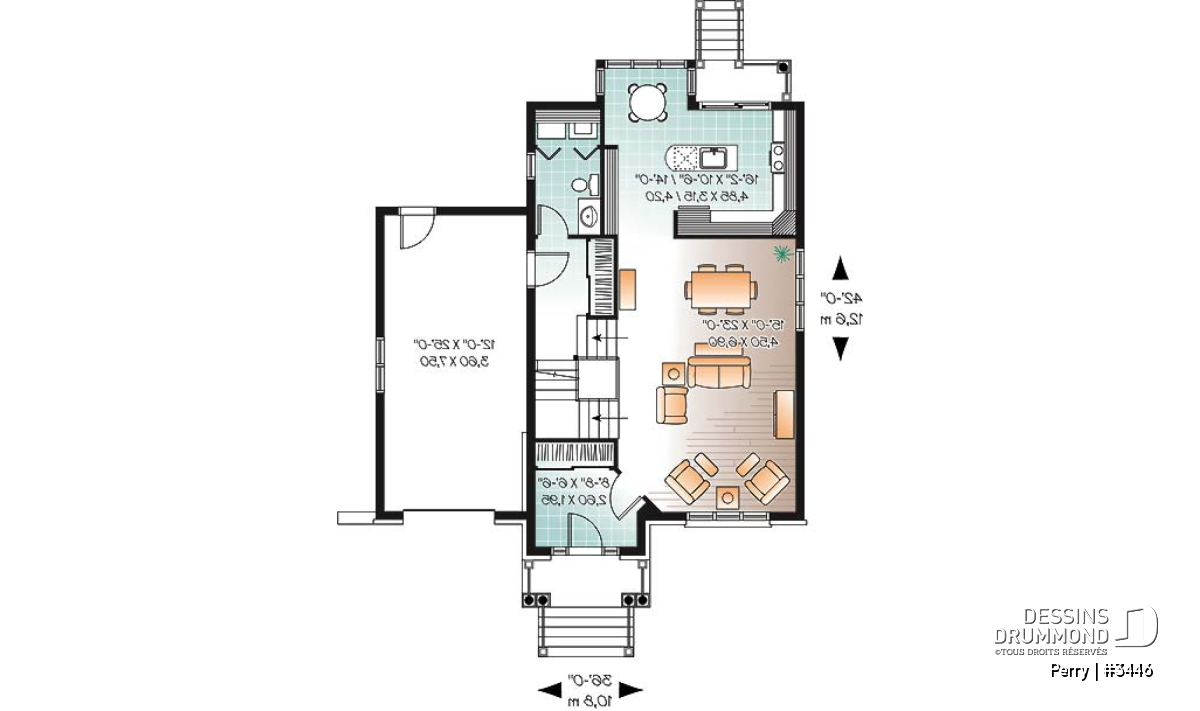 | Largeur | 36'0" | Profondeur | 42'0" |