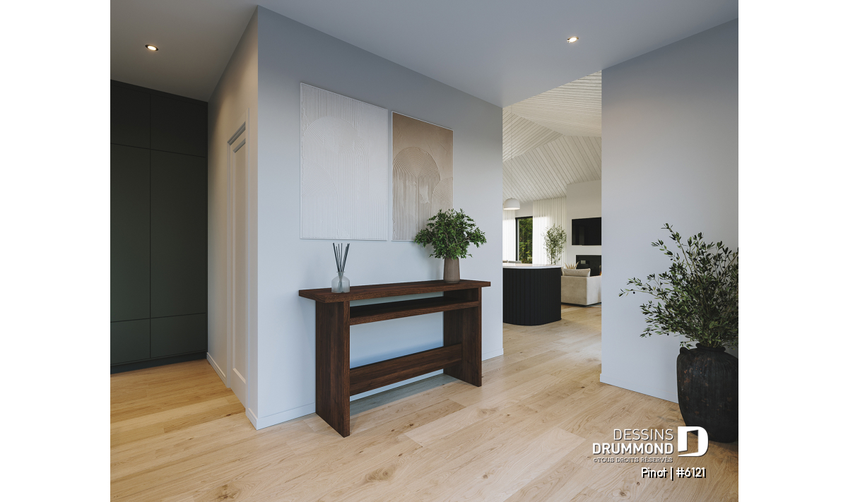 Vestiaire avec accès de l'entrée avant principale ainsi que du garage.