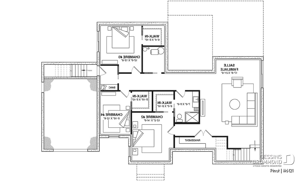 *Si vous souhaitez acheter le plan du sous-sol aménagé, tel que présenté sur la page de ce plan, veuillez sélectionner cette option dans le panier d'achat, dans la section "Sélectionner votre fondation". Si vous ne sélectionnez pas cette option, vous recevrez le sous-sol non fini, sans frais additionnel.
