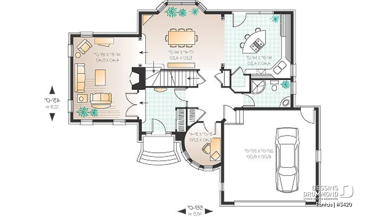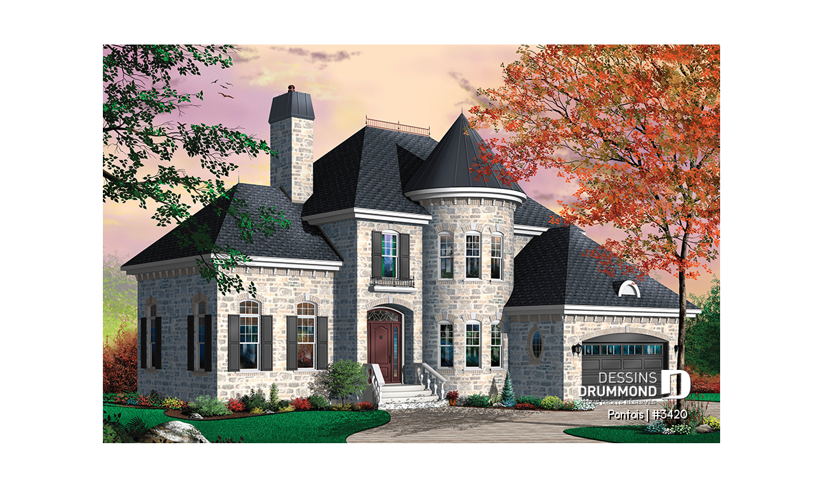 C’est par un vestibule des plus confortables que l’on accède à l’intérieur. Deux portes vitrées et un plancher surélevé nous invitent dans une grande salle de séjour dotée d’un plafond à 12pi., d’une fenestration sur trois façades et d’un foyer bien centré. D’ici, on accède à une salle à manger fort logeable agrémentée d’une fenêtre en baie et d’un plafond à 9pi comme pour la balance du rez-de-chaussée. La cuisine attenante suggère un îlot/lunch central, un grand garde-manger et la possibilité d’accéder à l’arrière par une triple porte-jardin. Une salle de douche, un espace bureau dans la tourelle et un garage double complètent ce plancher.