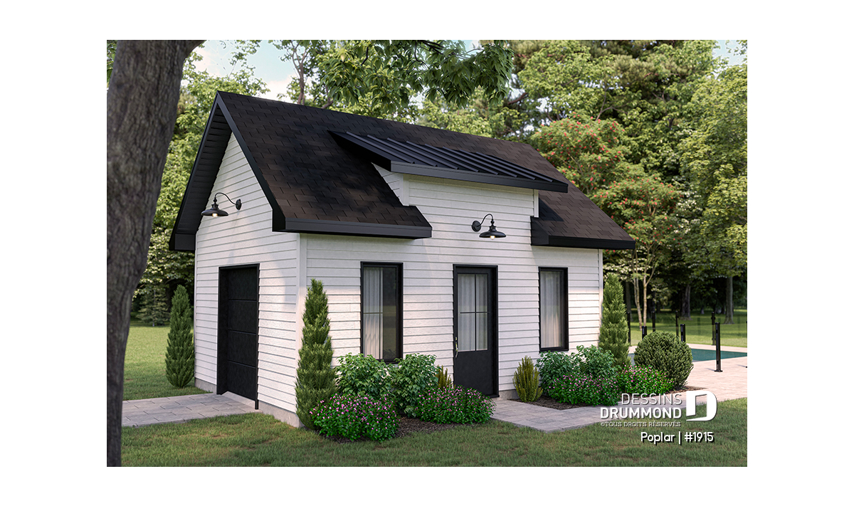 Plan de remise avec porte de garage pour rangement de véhicules hors route