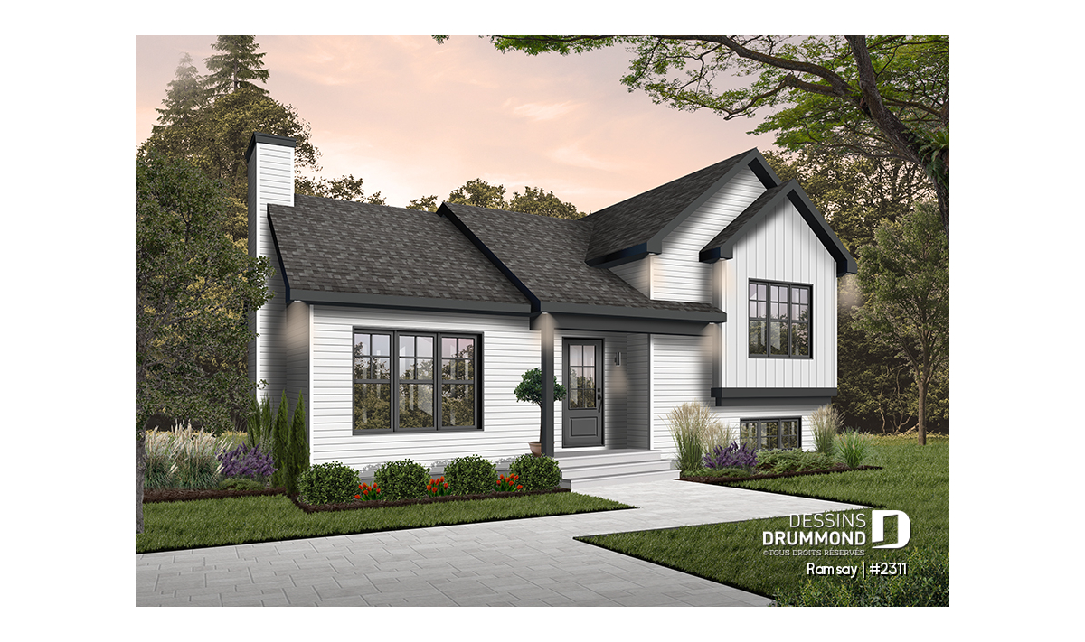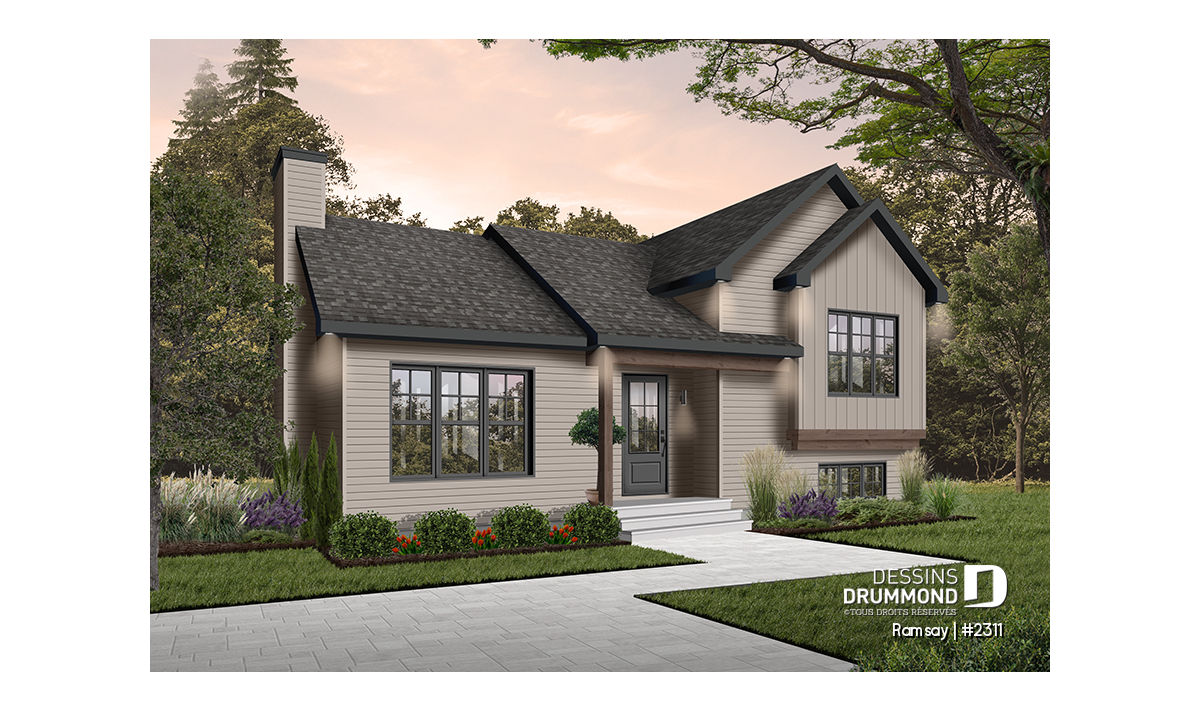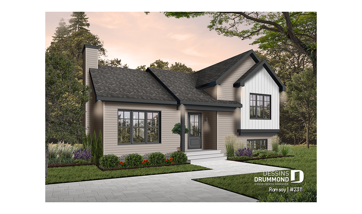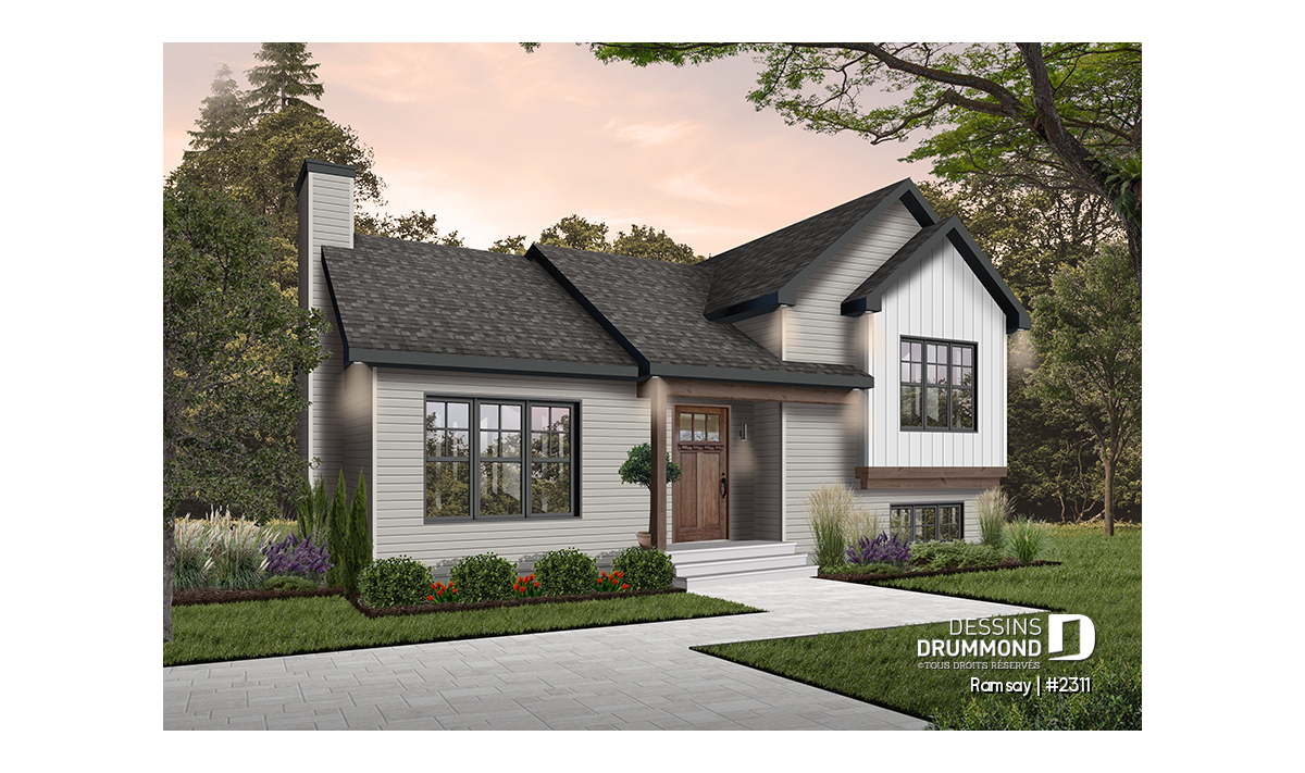 Un porche couvert et un fenêtrage abondant mettent en avant plan la belle luminosité naturelle de cette magnifique maison moderne aux accents rustiques. L'entrée principale s'ouvre sur un plan d'étage à concept ouvert qui est encore amélioré par le plafond cathédrale au salon, à la salle à manger et à la cuisine. La cuisine et la salle à manger attenante bénéficient de généreuses fenêtres et d’un accès à l’arrière-cour par une porte patio.