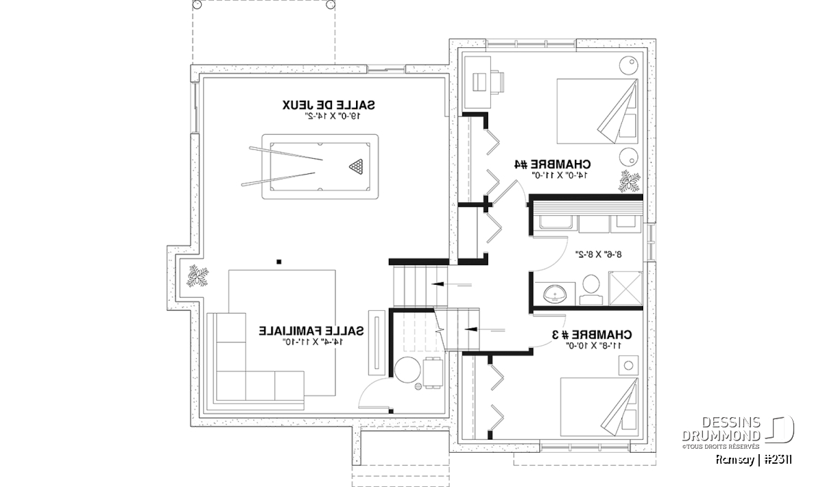 En haut d'un demi-escalier se trouve une aile isolée, la chambre principale et la chambre secondaire étant séparées par une salle de bains apaisante avec bain et douche séparés. En bas, nous trouvons une salle familiale, une salle de jeux, un combo salle de bains / salle de lavage et deux chambres supplémentaires.