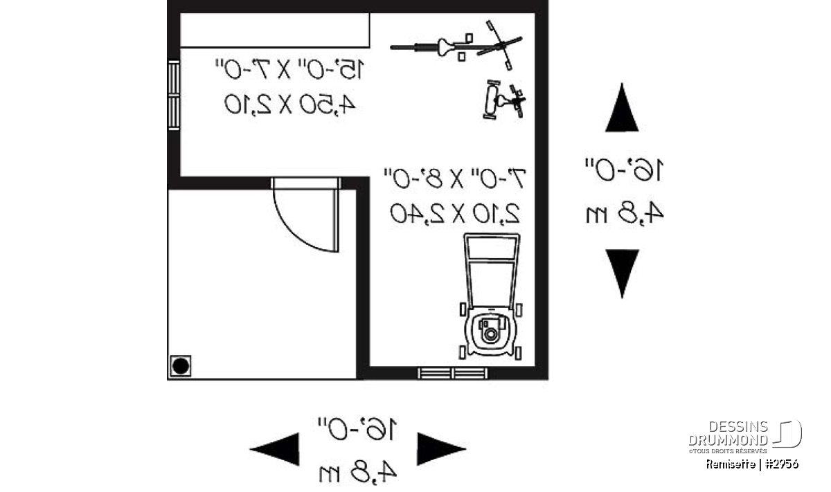 Rez-de-chaussée - Plan de remise 16pi x 16pi pour rangement articles de sport et de jardinage - Remisette