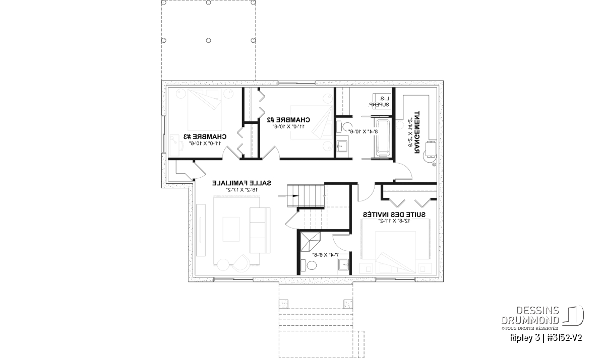 *Si vous souhaitez acheter le plan du sous-sol aménagé, veuillez sélectionner cette option dans le panier d'achat, dans la section "Sélectionner votre fondation". Si vous ne sélectionnez pas cette option, vous recevrez le sous-sol non fini, sans frais additionnel.