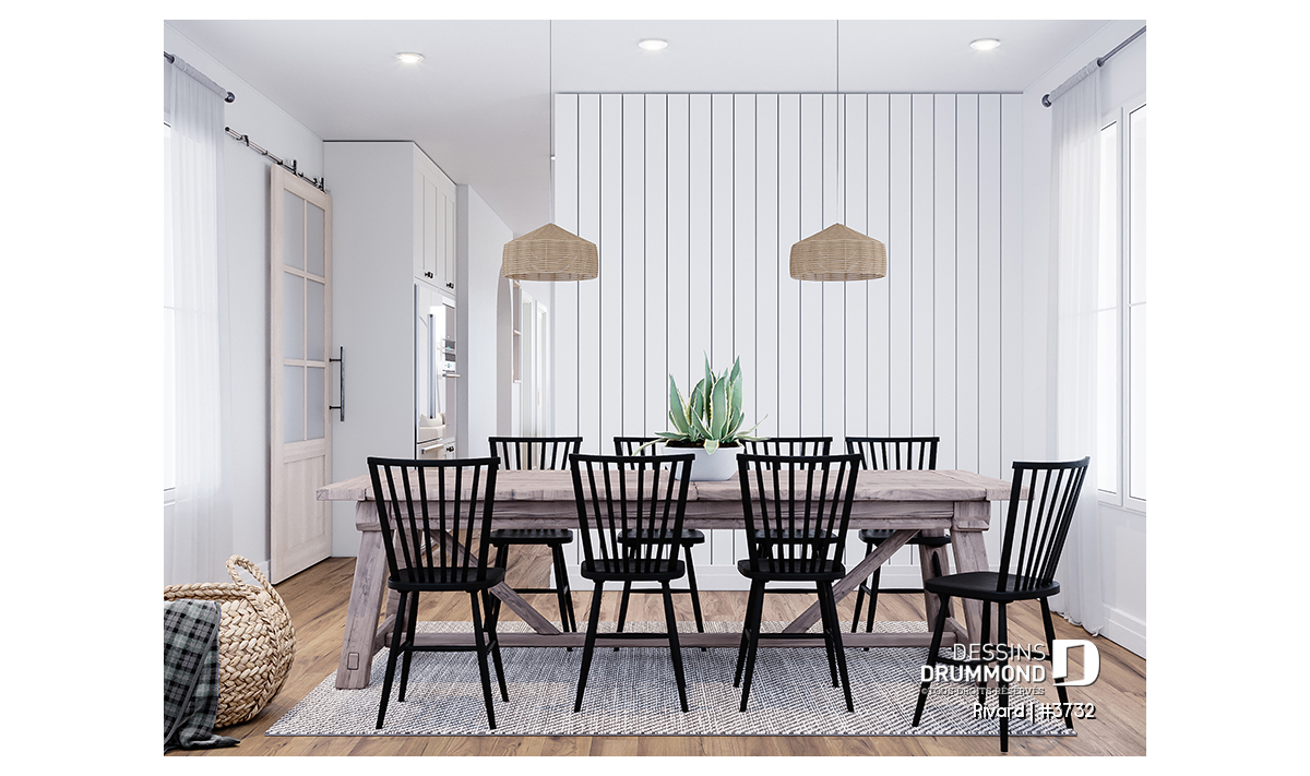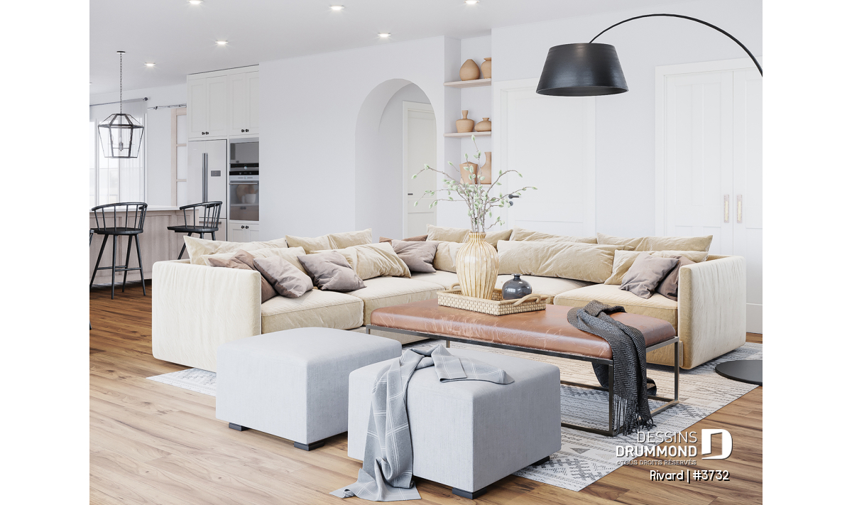 Une arche sépare le secteur hall d'entrée et les aires communes à l'arrière de la maison.