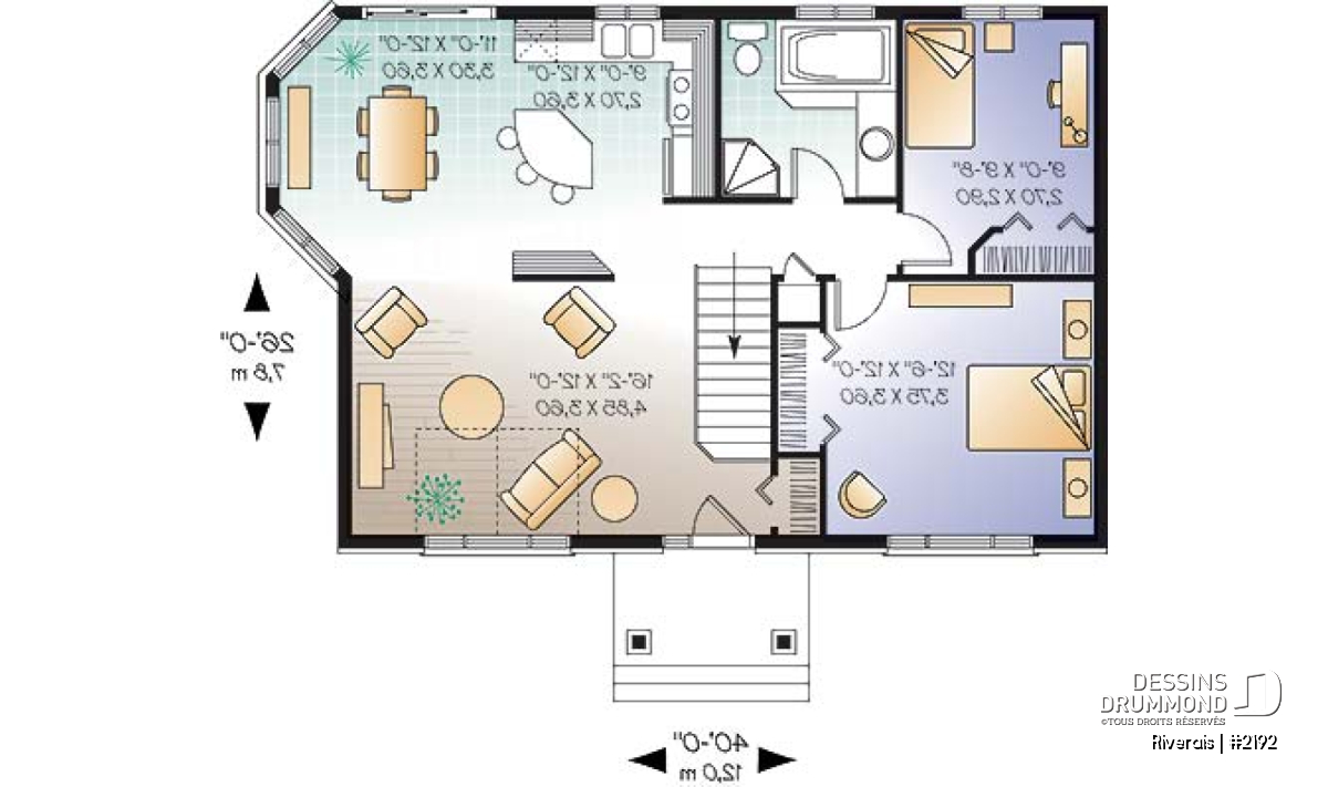| Largeur | 40'0" | Profondeur | 26'0" |