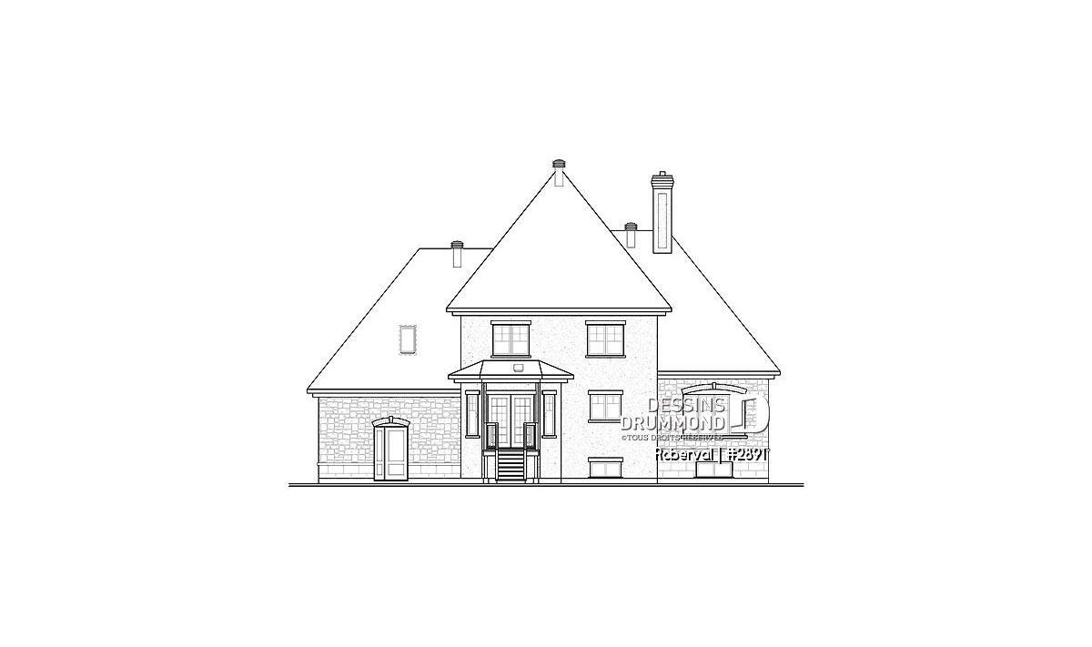 Des lignes remarquables, des volumes attrayants et bien balancés, une fenestration abondante et des matériaux extérieurs tout à fait adéquats procurent à cette maison toute la noblesse recherchée lors de la conception.