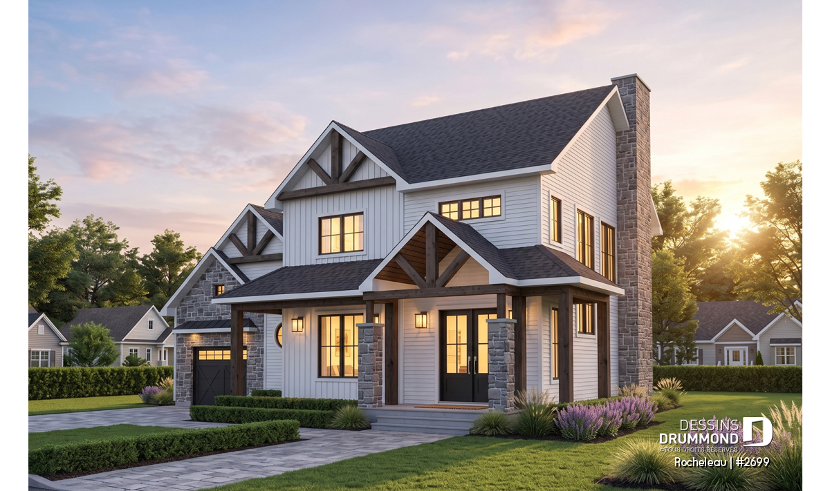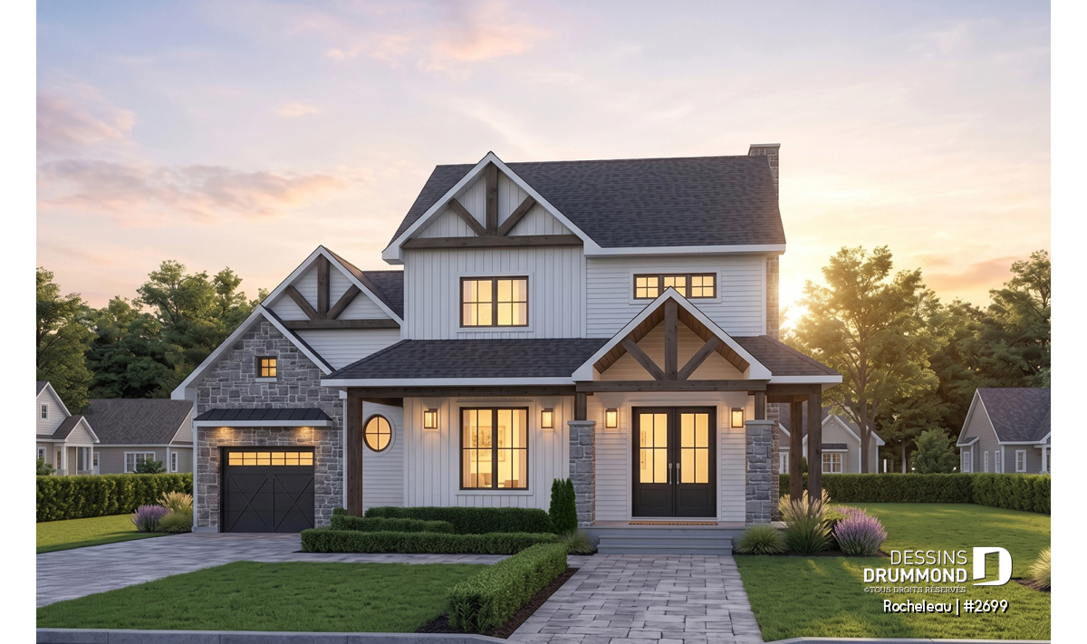 Le plan de maison ROCHELEAU (plan #2699) propose 1882 pi.ca. aménagés sur 2 étages, en plus d'un sous-sol avec *proposition d'aménagement (à faire ou non selon vos besoins) amenant ainsi cette belle maison à 3137 pi.ca.!