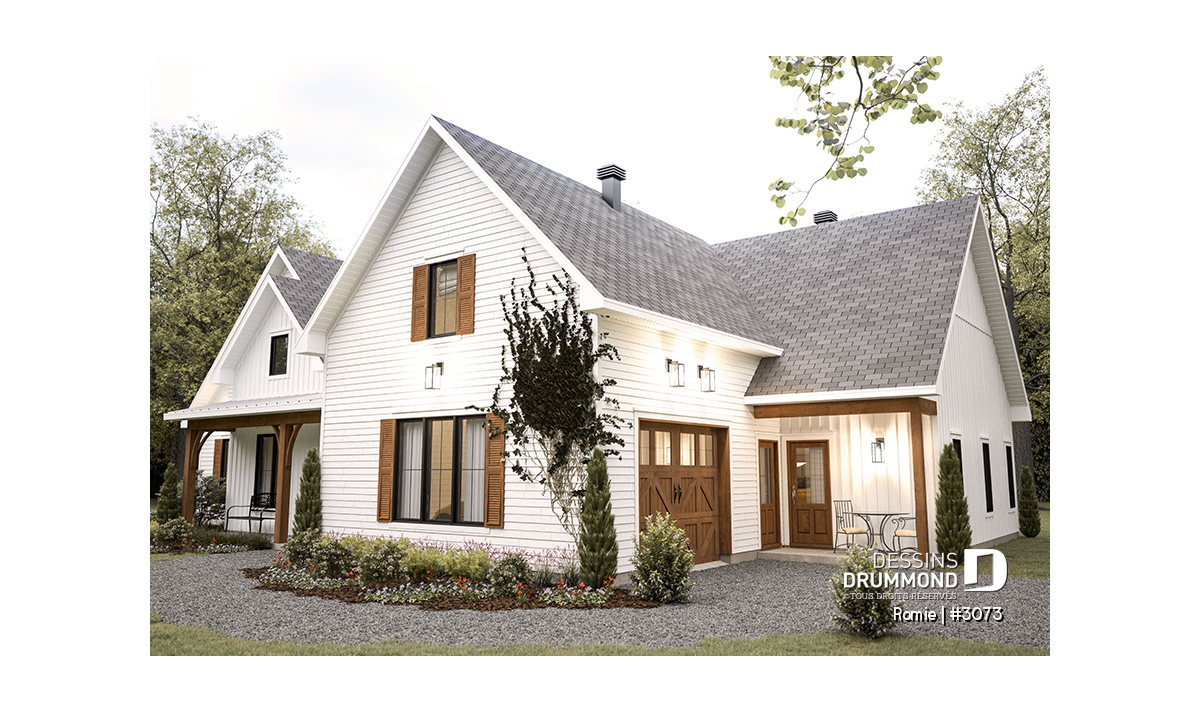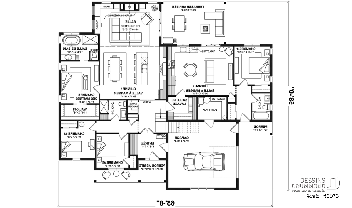 Plafond cathédrale, Foyer, Terrasse abritée, Terrasse abritée, Garde-manger, Accès au garage par le côté, Banquette, Ilôt, Walk-in ch. maîtres, Bain et douche séparés, Aire ouverte, Aire ouverte, Meuble(s) encastré(s), Garage spacieux, Tablettes, Chambres séparées, Coin bureau, Arche