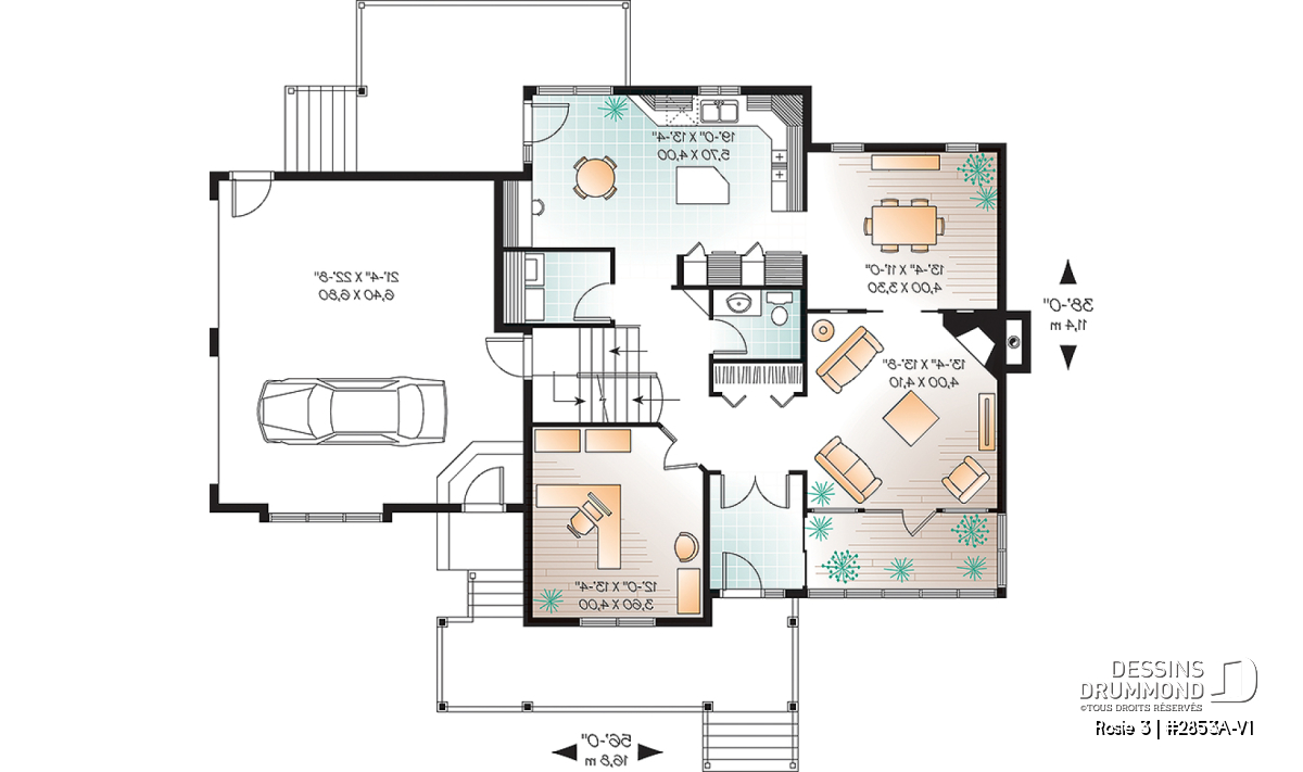 Plafond à 9' au rez-de-chaussée.