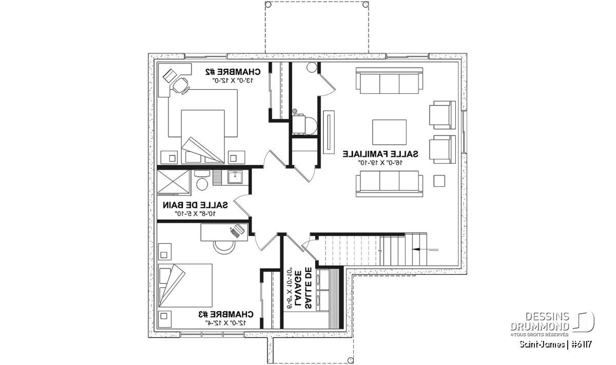 *Si vous souhaitez acheter le plan du sous-sol aménagé, tel que présenté sur la page de ce plan, veuillez sélectionner cette option dans le panier d'achat, dans la section "Sélectionner votre fondation". Si vous ne sélectionnez pas cette option, vous recevrez le sous-sol non fini, sans frais additionnel.