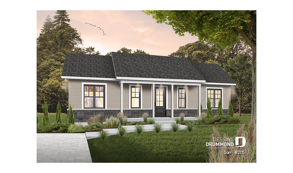 Ce plan de plain-pied économique au style champêtre séduit par son allure accueillante et son ambiance chaleureuse. Conçu pour offrir une vie simple, fonctionnelle et confortable, il constitue un choix idéal pour les familles qui souhaitent profiter d’un espace bien pensé, à prix abordable.