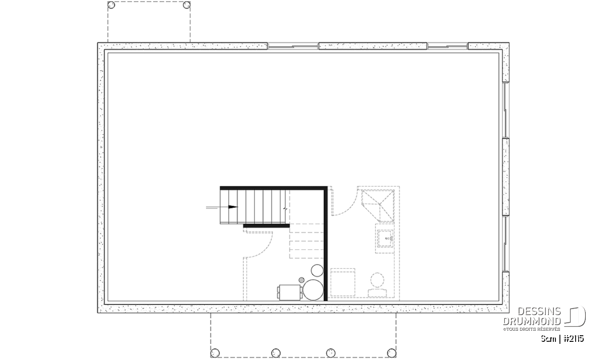 Sous-sol non fini offrant un vaste potentiel, idéal pour aménager une salle familiale, des chambres additionnelles ou du rangement.