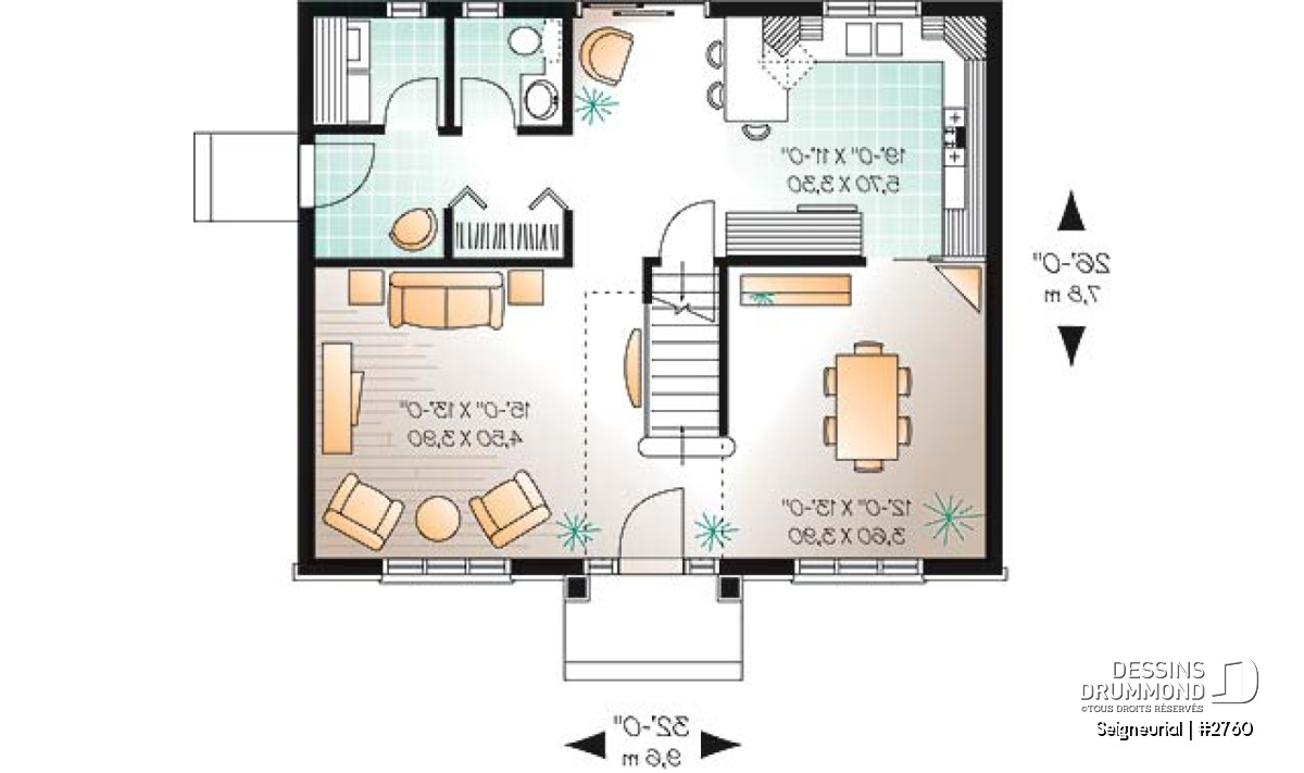 | Largeur | 32'8" | Profondeur | 26'0" |