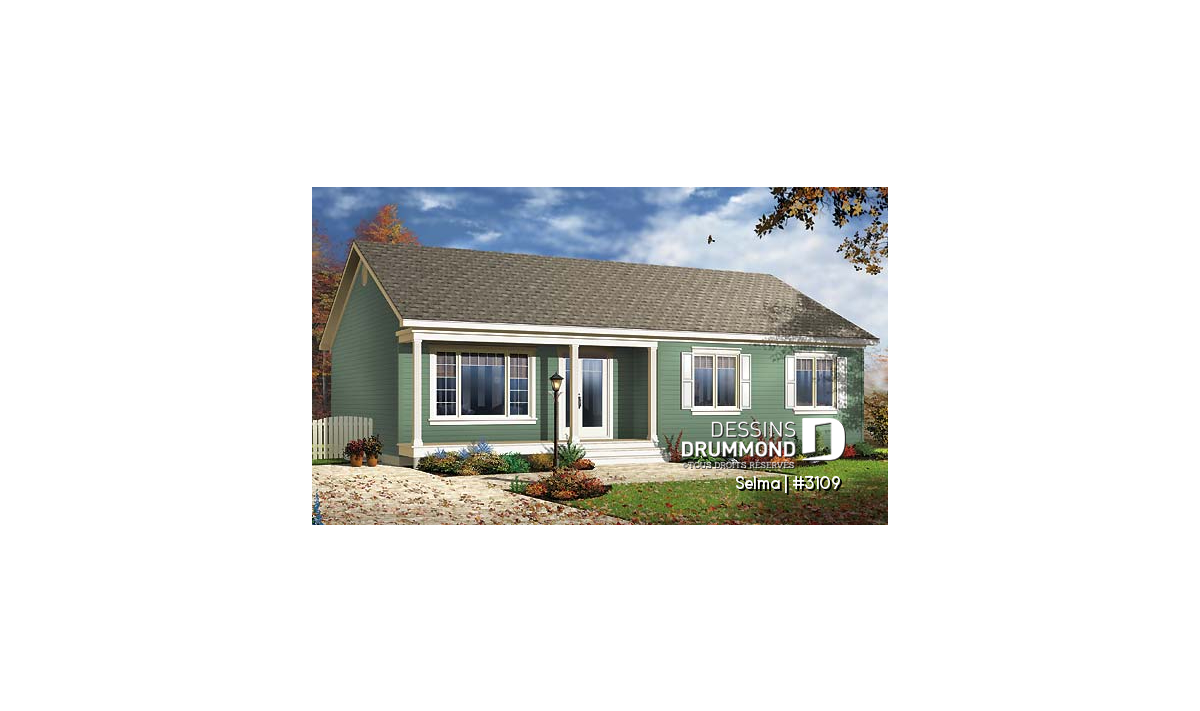 Vue avant - MODÈLE DE BASE - Modèle abordable de 3 chambres avec bain et douche séparés à la salle de bain - Selma