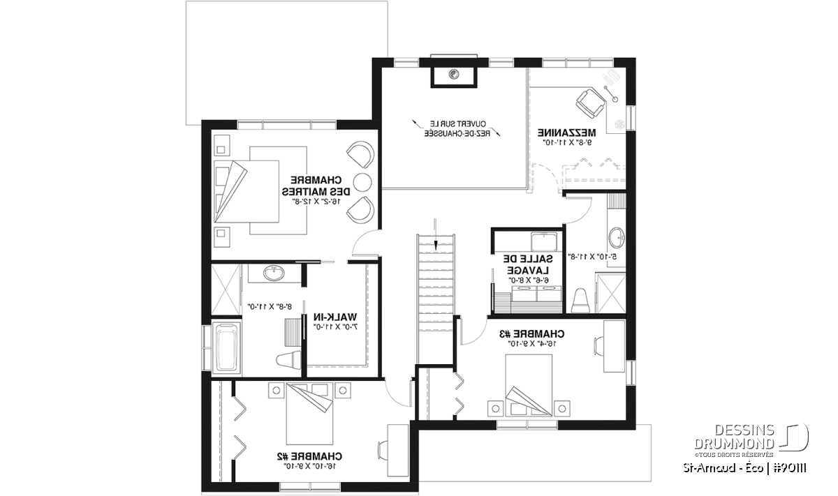 À l’étage, nous retrouvons une mezzanine ouverte avec un espace qui peut servir de bureau ou de chambre directement au sud-est. La chambre des maîtres, quant à elle, se situe au sud également et possède un grand walk-in ainsi qu’une salle de bain privé. Il y a aussi deux autres grandes chambres, une salle de lavage fermée ainsi qu’une salle de bain complète pour le reste de la famille.