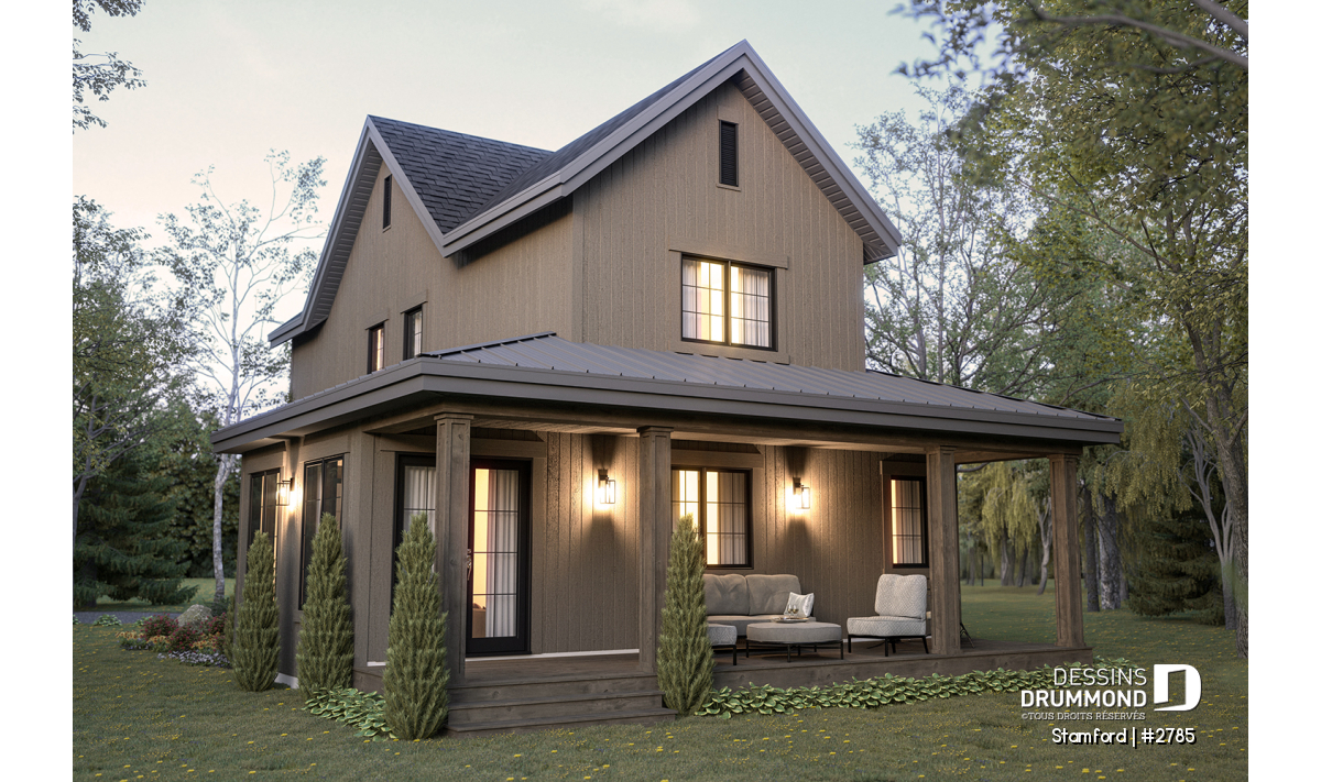 Grande galerie couverte à l’avant et spacieuse terrasse abritée à l’arrière, idéales pour profiter de l’extérieur en toute saison.