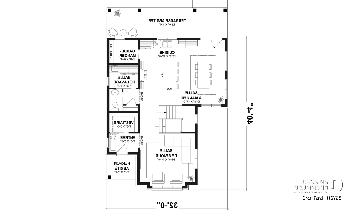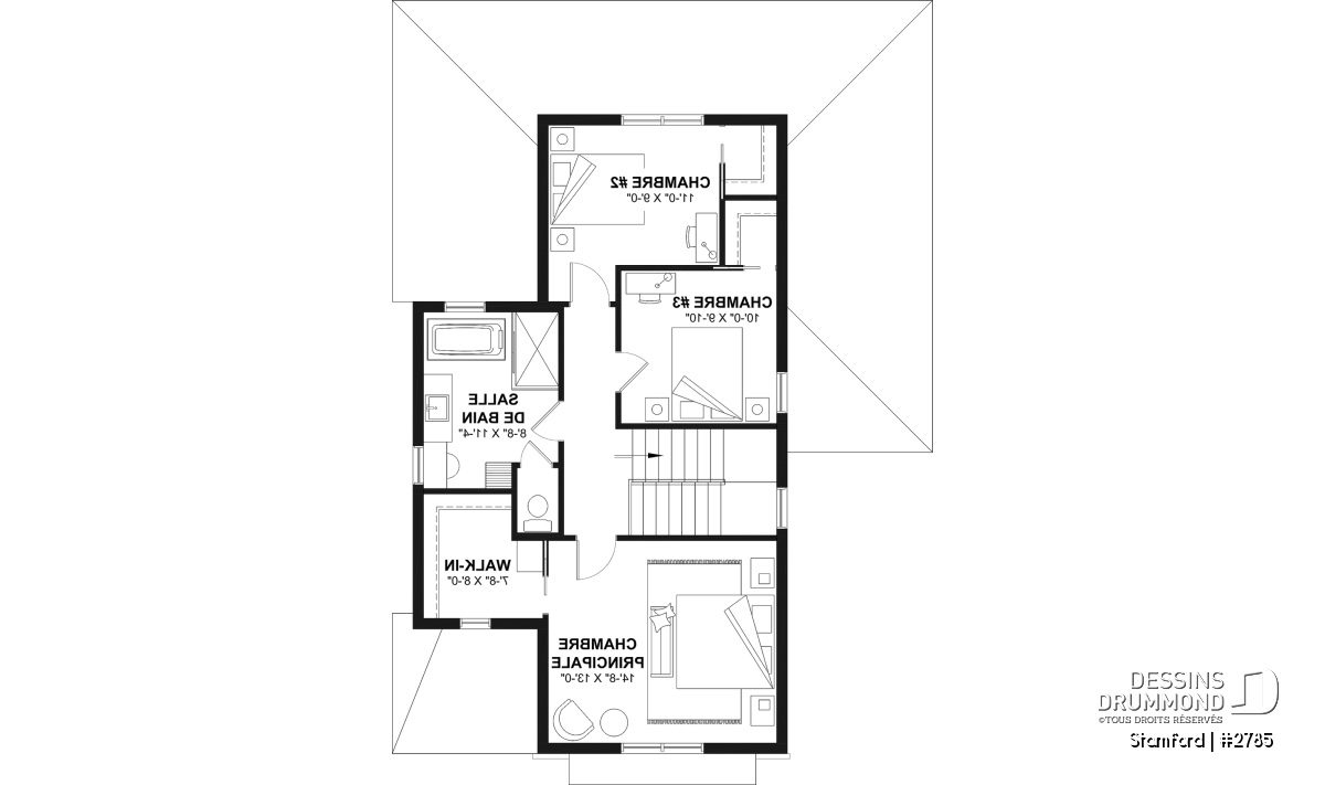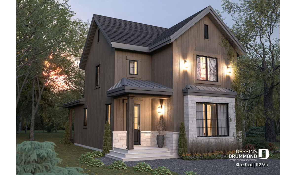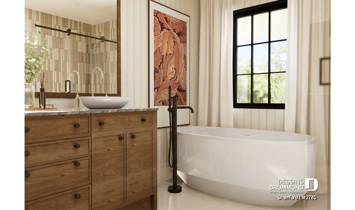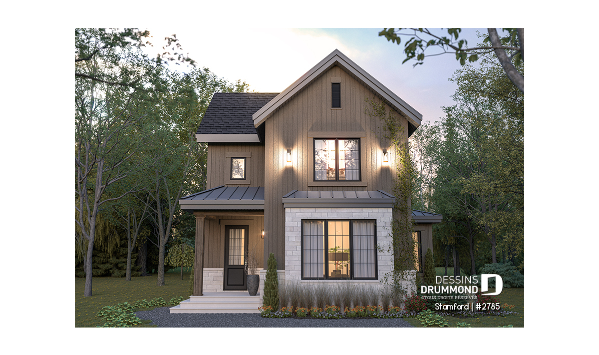 Le plan de maison STAMFORD (#2785) propose une superficie de 1864 pi² répartie sur deux étages, avec en option un sous-sol entièrement aménagé ajoutant 1040 pi² supplémentaires.