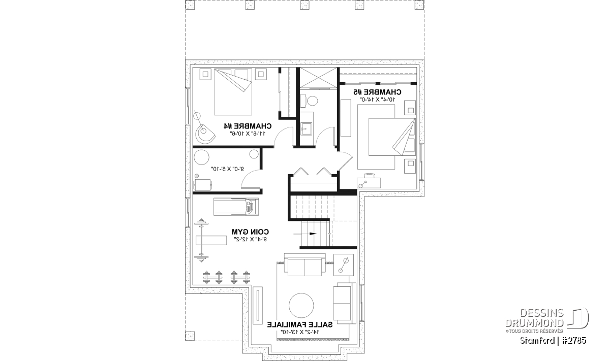 *Si vous souhaitez acheter le plan du sous-sol aménagé, tel que présenté sur la page de ce plan, veuillez sélectionner cette option dans le panier d'achat, dans la section "Sélectionner votre fondation". Si vous ne sélectionnez pas cette option, vous recevrez le sous-sol non fini, sans frais additionnel.