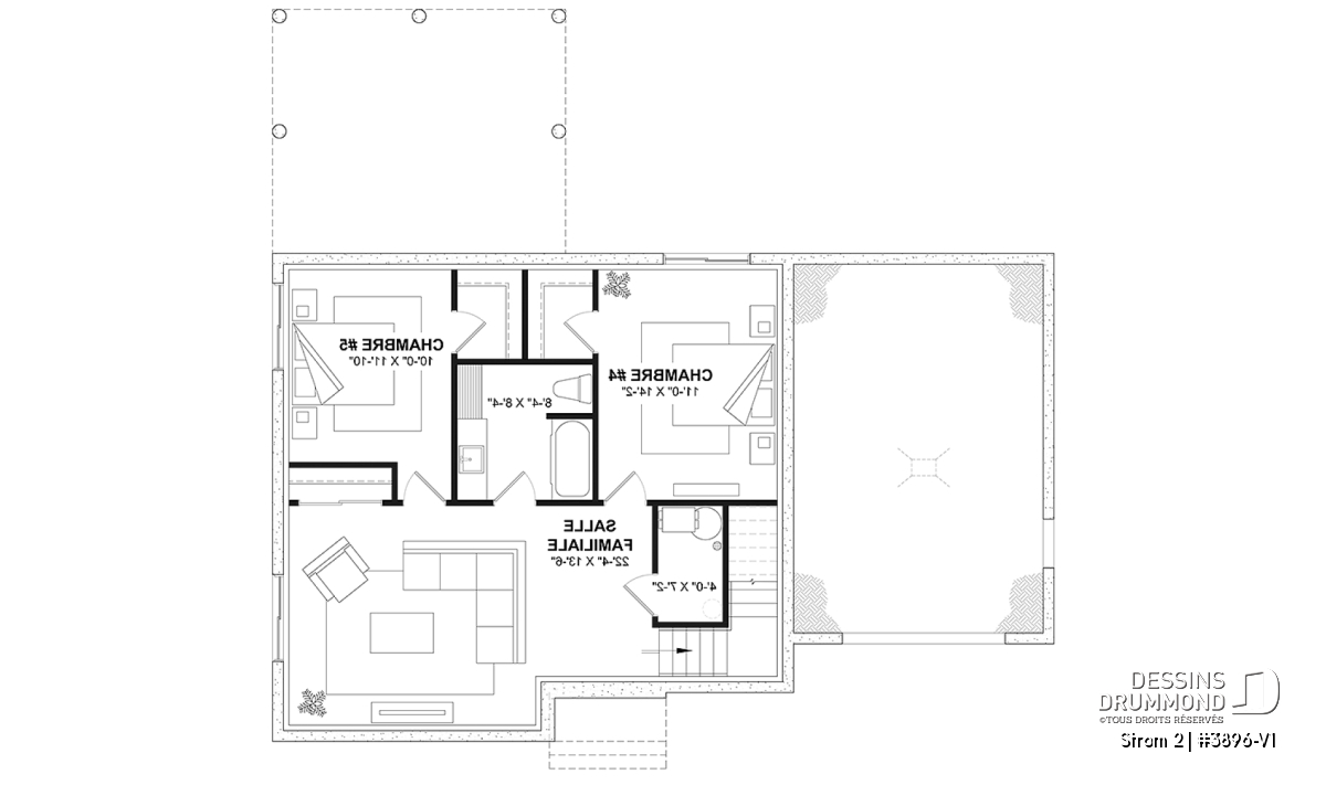 *Si vous souhaitez acheter le plan du sous-sol aménagé, tel que présenté sur la page de ce plan, veuillez sélectionner cette option dans le panier d'achat, dans la section "Sélectionner votre fondation". Si vous ne sélectionnez pas cette option, vous recevrez le sous-sol non fini, sans frais additionnel.