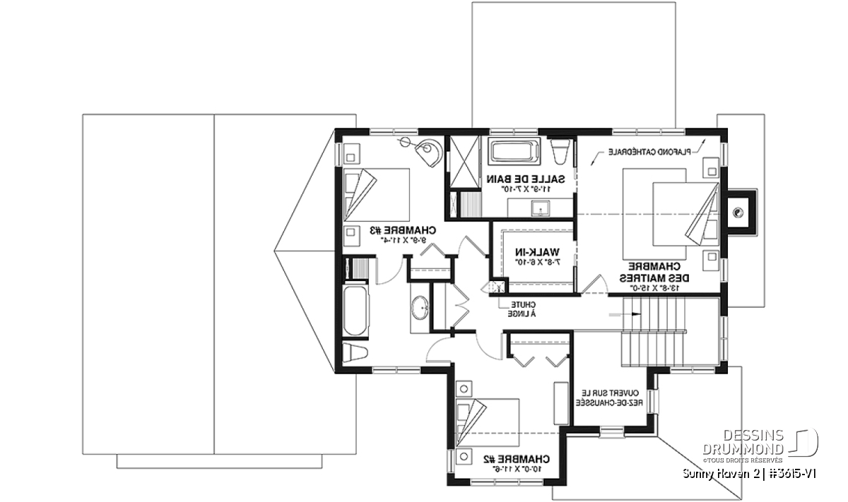 À l’étage, la suite des parents constitue un véritable refuge privé. Son plafond cathédral accentue le sentiment de grandeur, tandis que la salle de bain attenante et le walk-in assurent confort et fonctionnalité. Les chambres secondaires, bien proportionnées, sont conçues pour offrir intimité et polyvalence, idéales pour une famille en évolution. Des solutions de rangement bien pensées, incluant une chute à linge, ajoutent une touche de praticité appréciable.