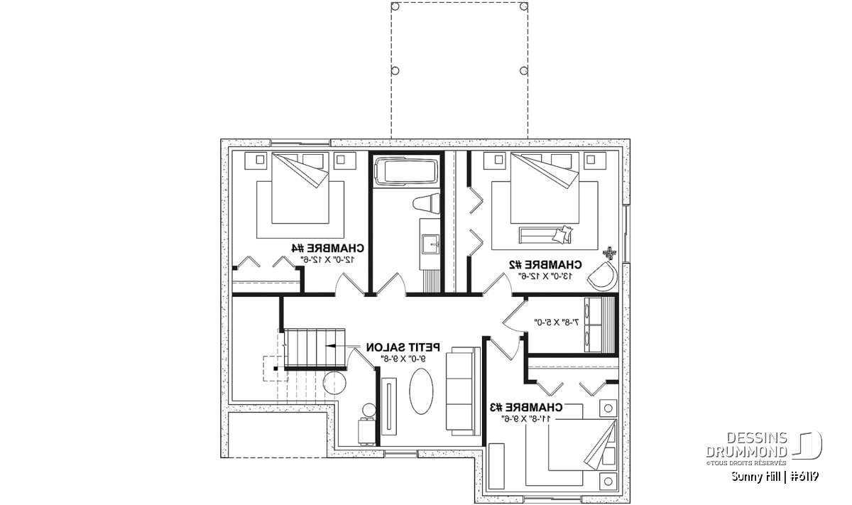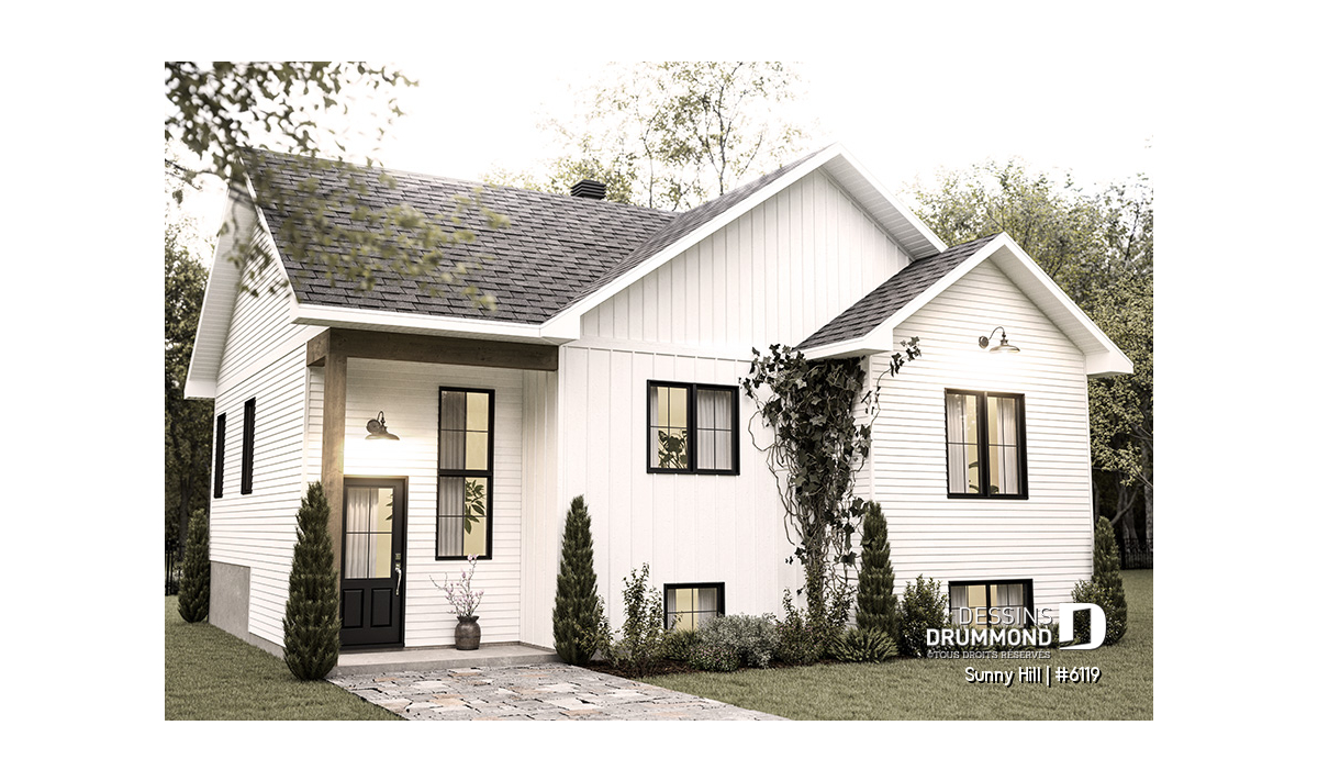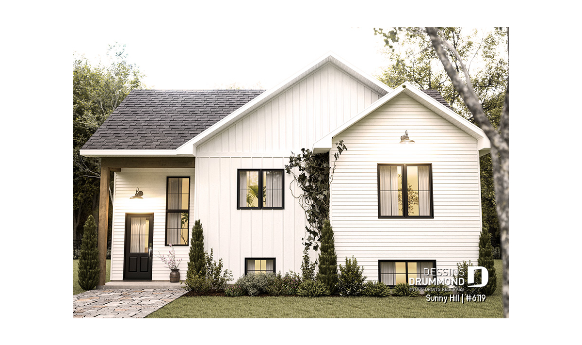 Le plan de maison Sunny Hill (#6119) vous plaira pour son total de 2050 pi.ca. aménagés sur 2 niveaux et son style d'inspiration Farmhouse Moderne.