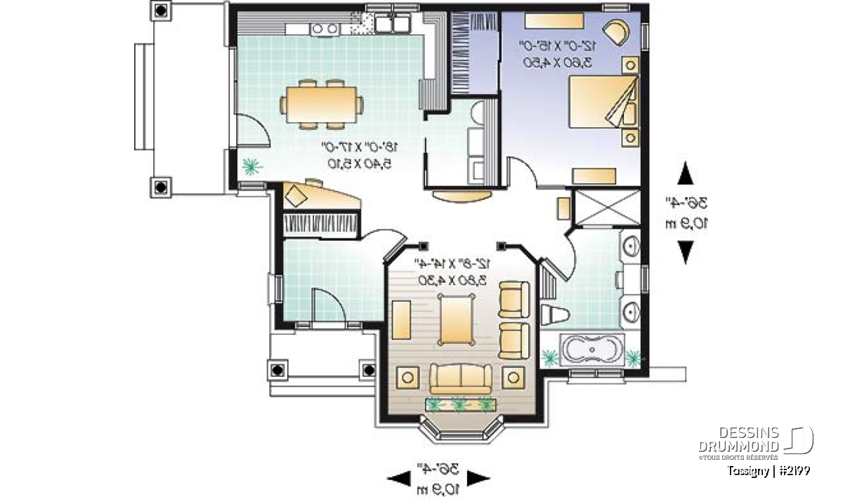 | Largeur | 36'4" | Profondeur | 36'4" |