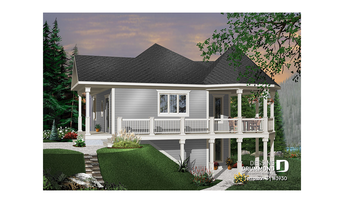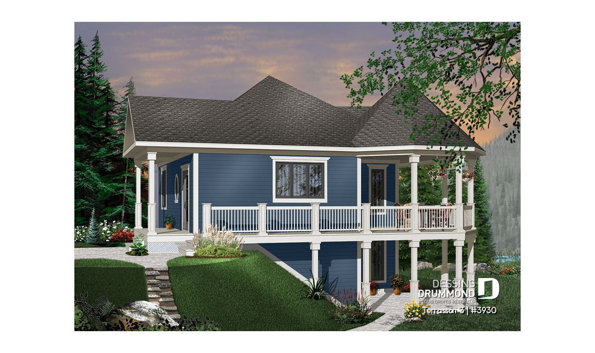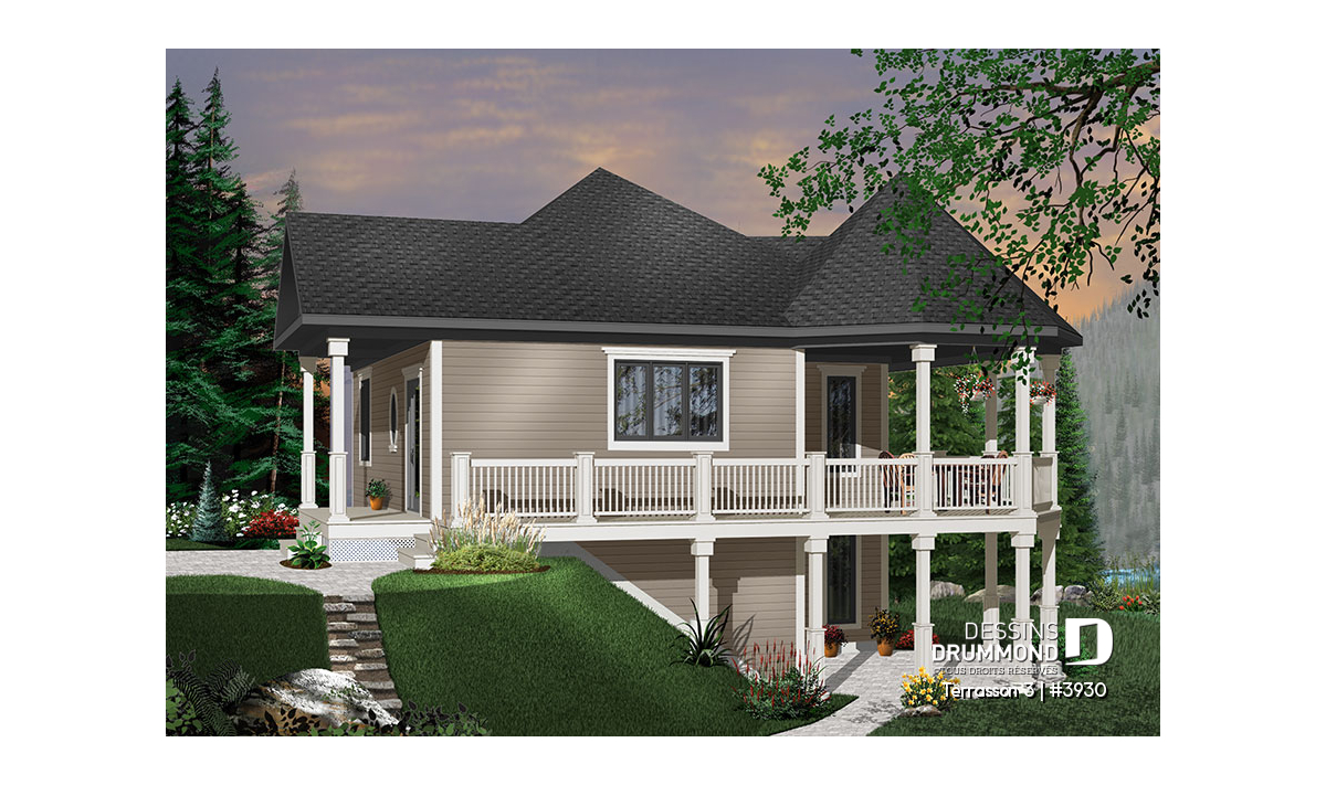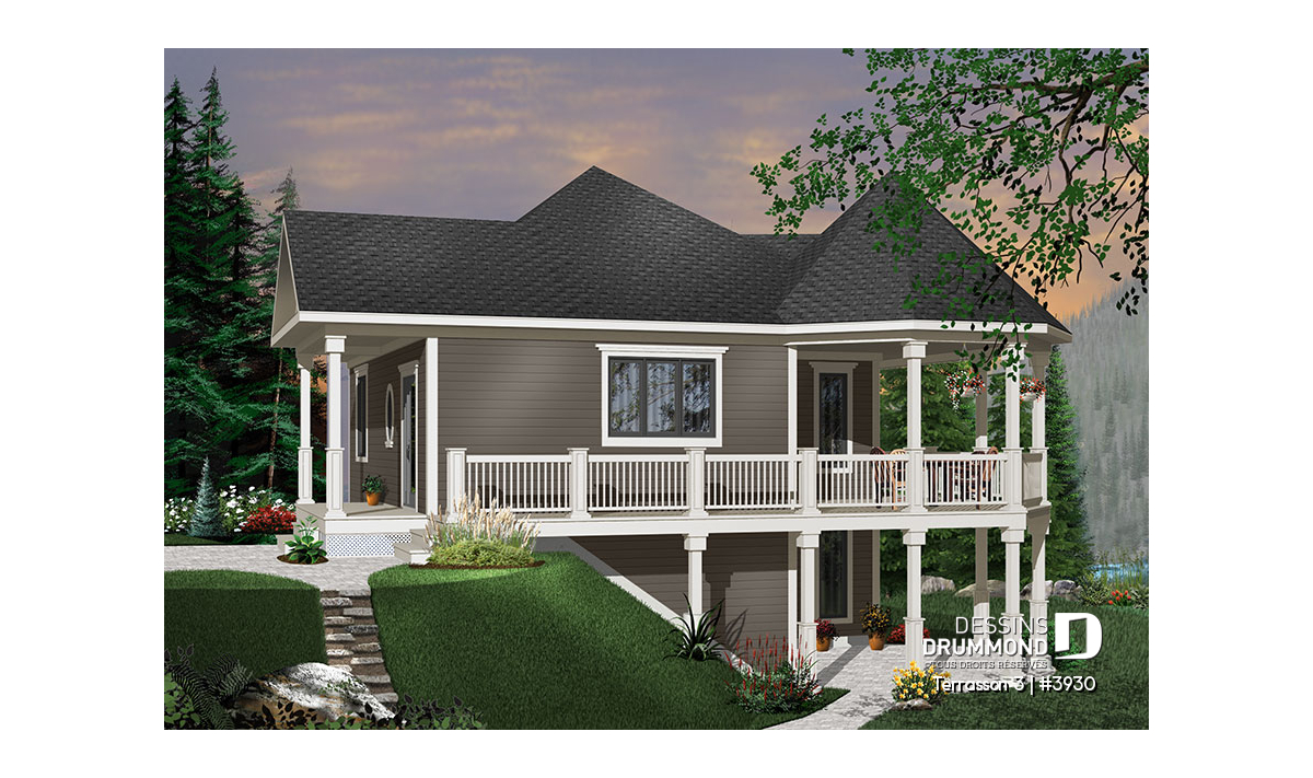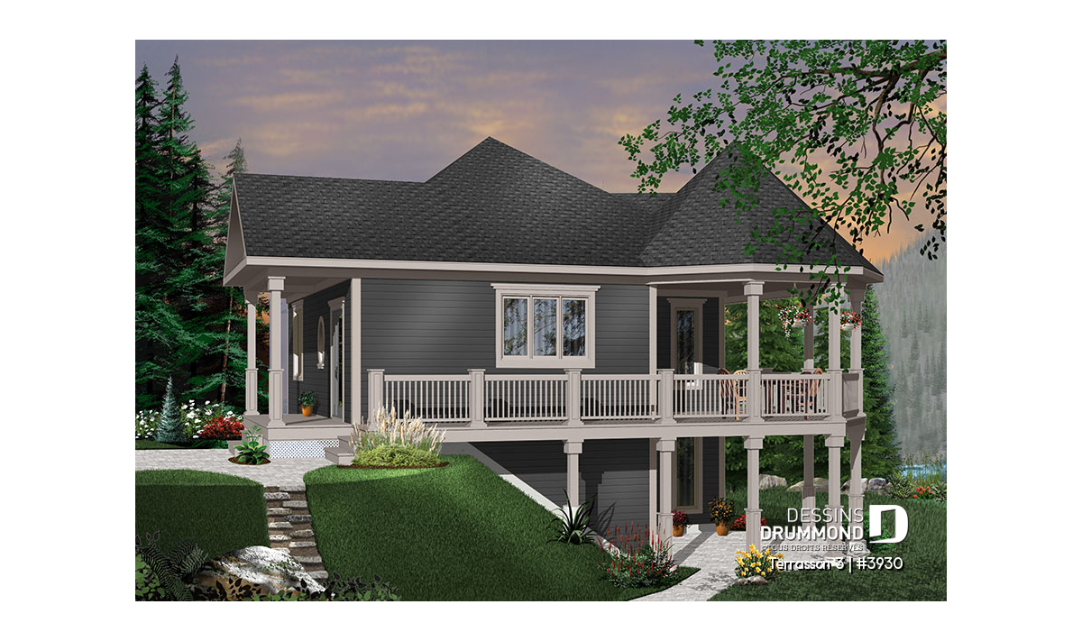 Étant donné la popularité indéniable du modèle 3900 ( visible sur notre site dessinsdrummond.com ) nous avons cru bon d’offrir une version agrandie et proposant davantage de pièces aménagées pour un extérieur bien peu modifié. Il faut dire qu’avec le charme évident de ce modèle, attribuable à ses volumes et à ses matériaux de recouvrement comme le déclin champêtre aux murs et le bardeau de cèdre à la toiture, cette maison devient véritablement un coup de cœur.