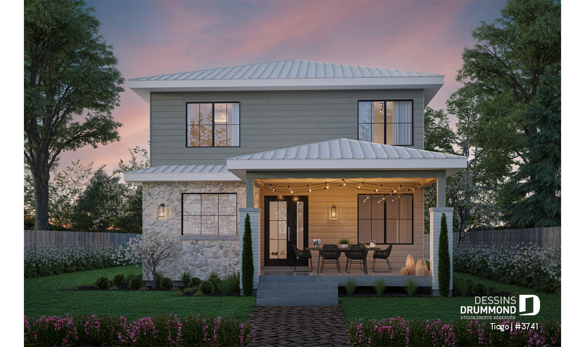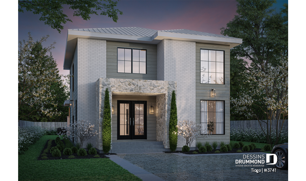 Laissez-vous séduire par le plan de maison TIAGO (#3741), une demeure au design raffiné qui marie harmonieusement des matériaux bruts au charme naturel avec des lignes épurées et modernes. Avec 2184 pi² aménagés sur deux étages, et la *possibilité d’ajouter un sous-sol entièrement aménagé de 1101 pi², cette maison offre un espace de vie généreux et fonctionnel.