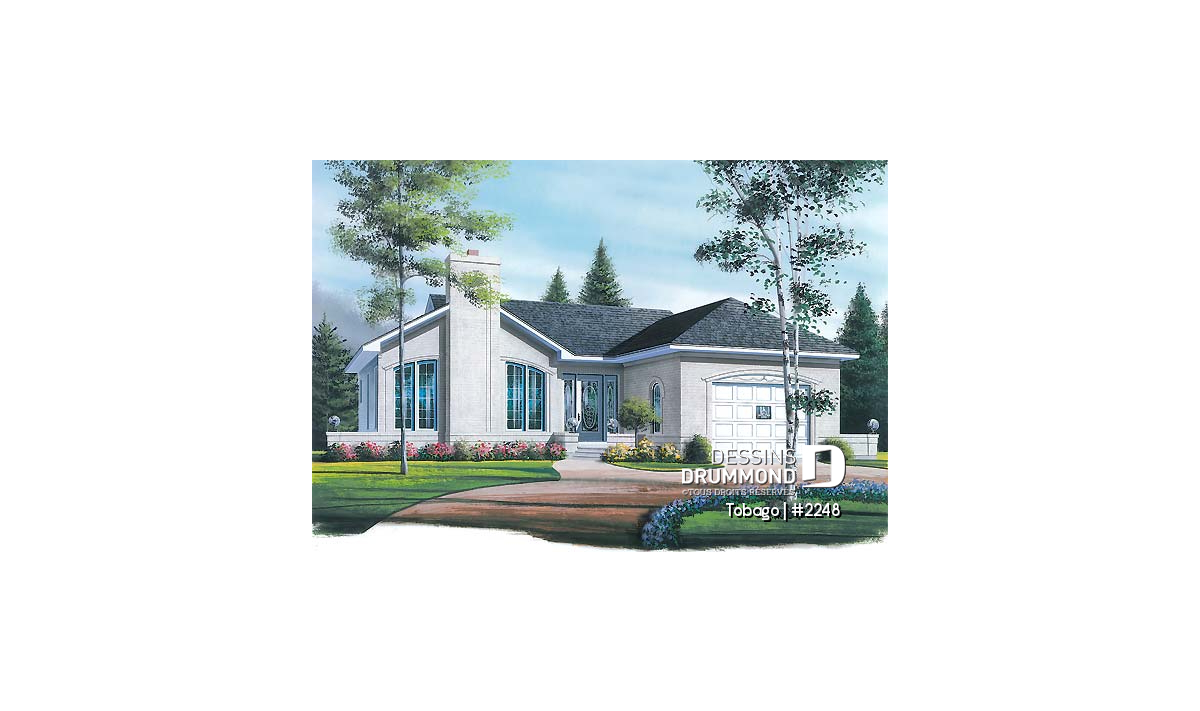 Rez-de-chaussée - Plan de style américain, 2 chambres, foyer au salon, grande cuisine, éviers doubles à la salle de bain, garage - Tobago