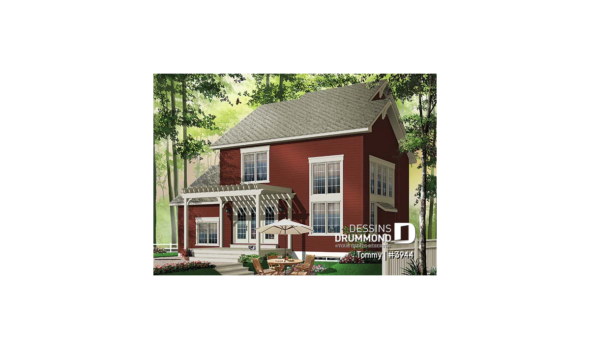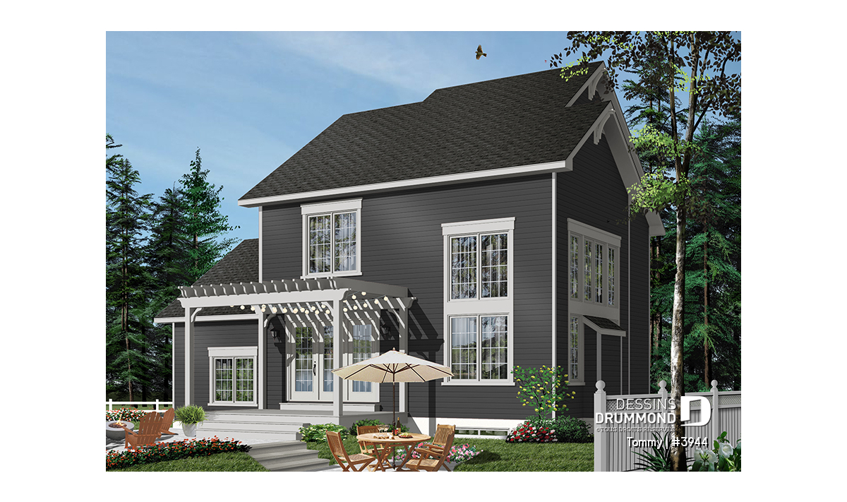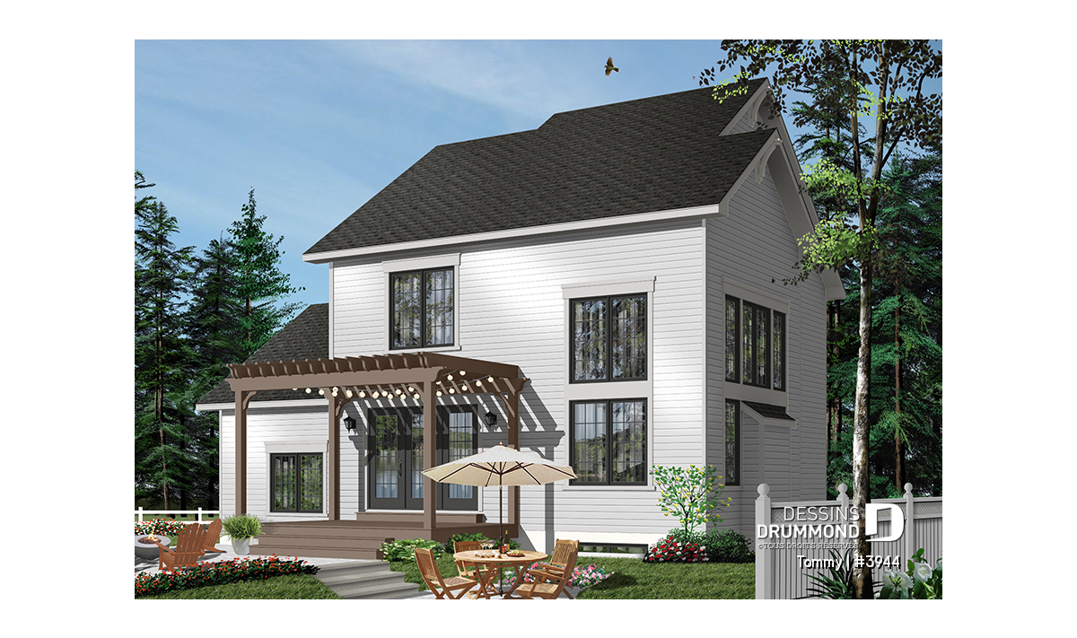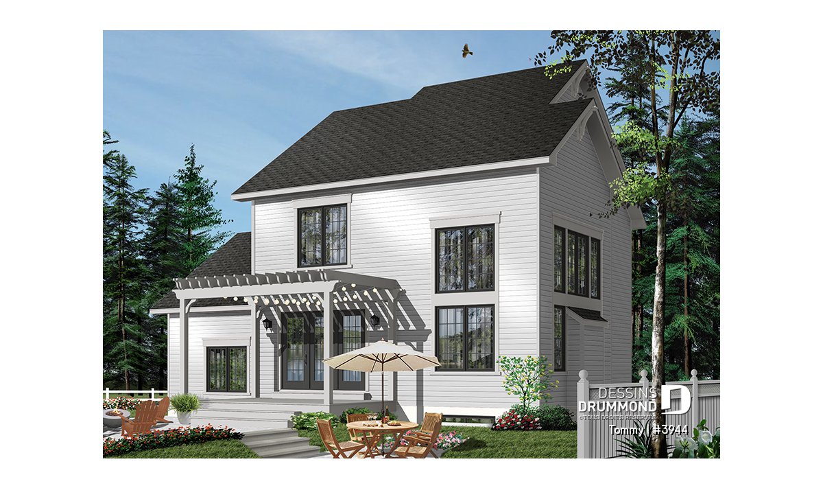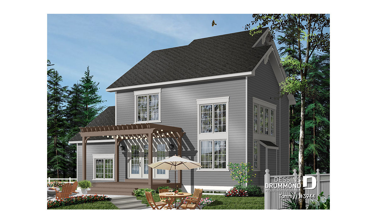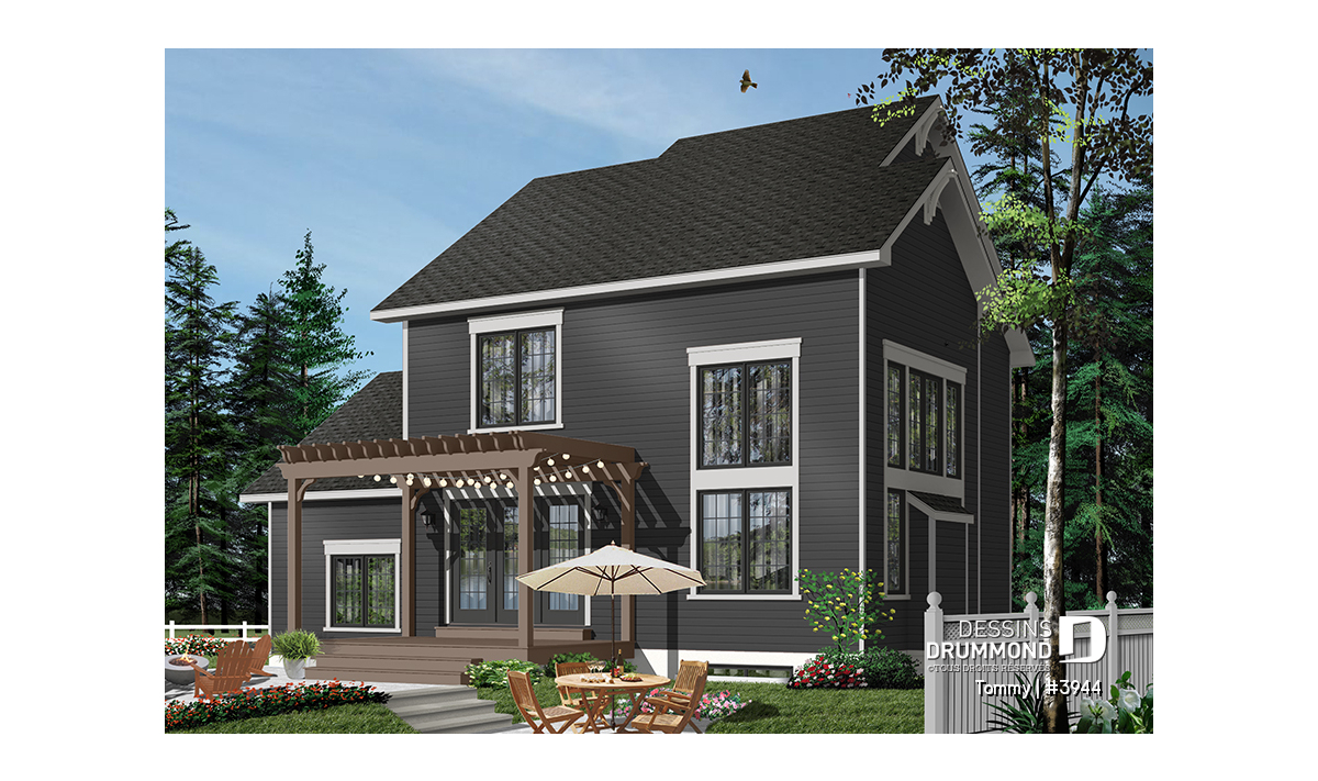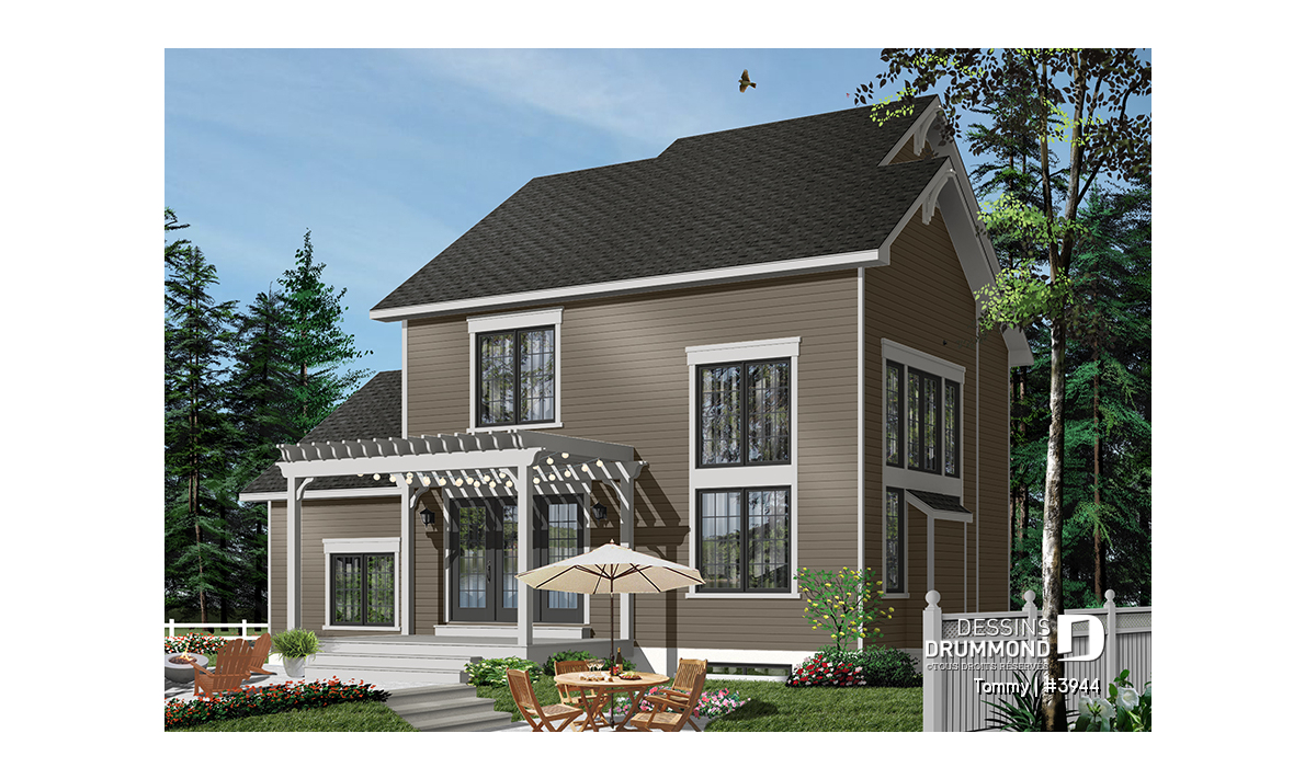 Terrasse arrière proposant une intéressante pergola, mais son coût n'est pas inclus dans le prix approx. de construction.