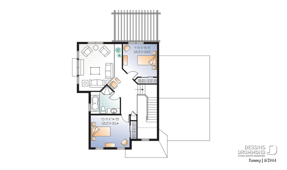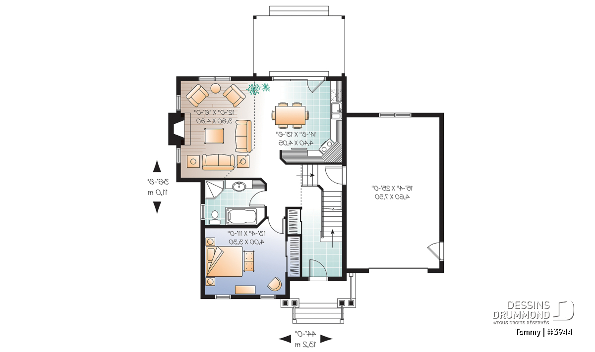 | Largeur | 44'0" | Profondeur | 36'8" |