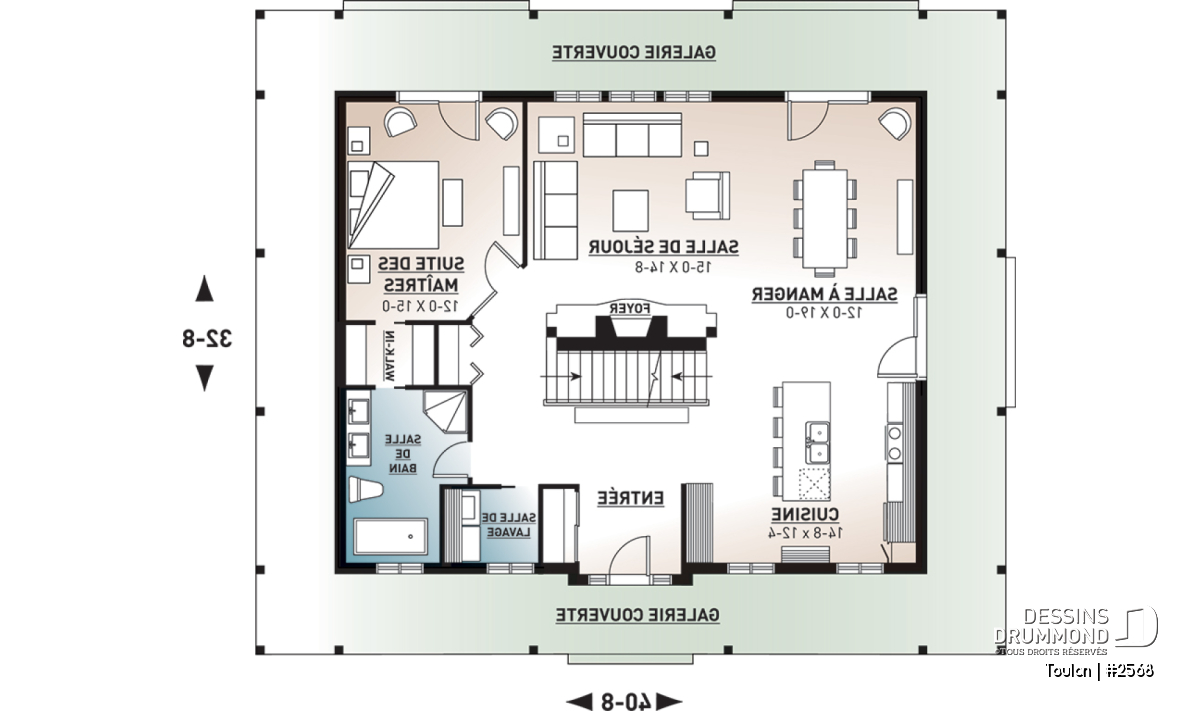 Galerie couverte sur 4 faces. Suite des maîtres et buanderie au rez-de-chaussée. Secteur activités très ouvert et remarquable.