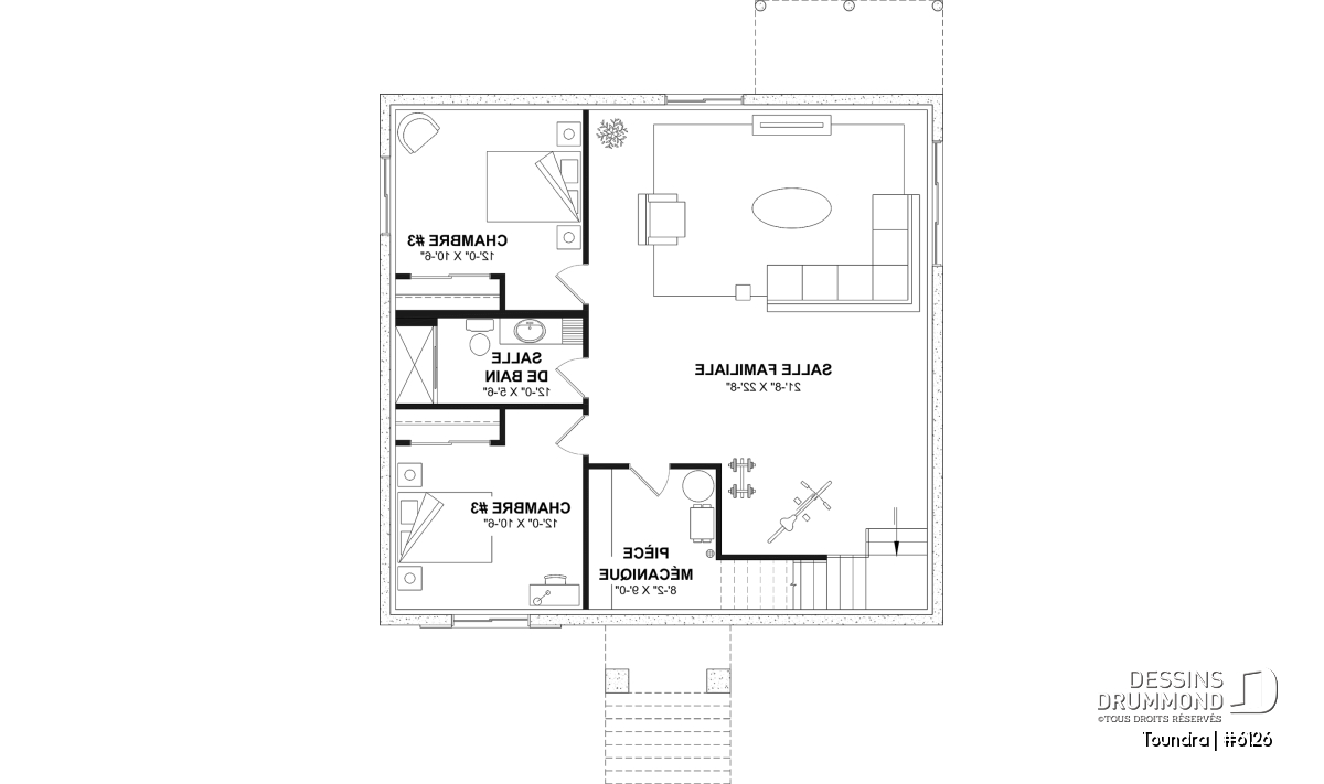 *Si vous souhaitez acheter le plan du sous-sol aménagé, veuillez sélectionner cette option dans le panier d'achat, dans la section "Sélectionner votre fondation". Si vous ne sélectionnez pas cette option, vous recevrez le sous-sol non fini, sans frais additionnel.