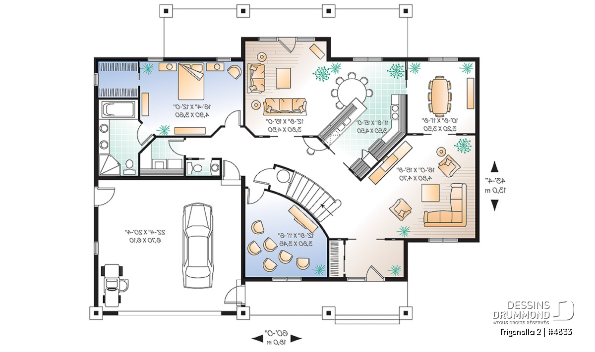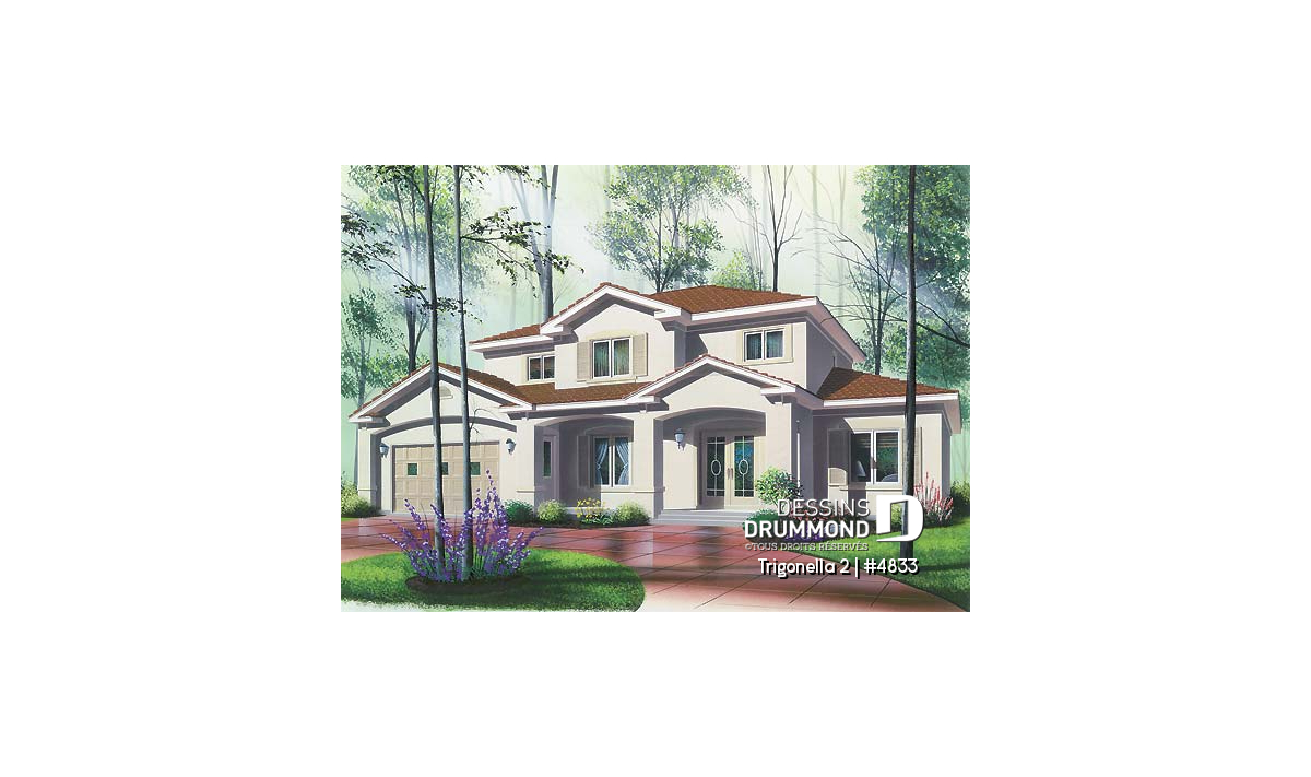 Vous êtes à la recherche d’une maison suffisamment logeable et de caractère différent ? Celle-ci, aux allures exotiques, suggère un porche abrité tant à l’avant qu’à l’arrière, un garage double et six chambres à coucher. Entrons donc sans plus tarder pour mieux apprécier l’aménagement intérieur.