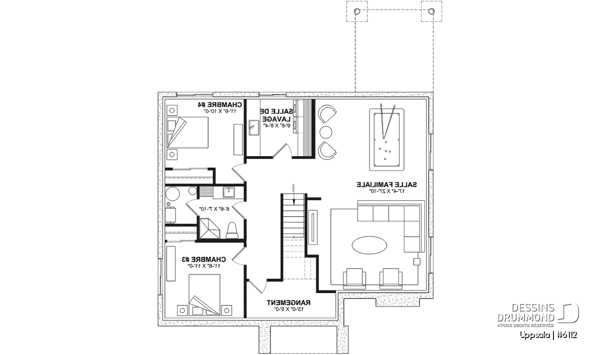 *Si vous souhaitez acheter le plan du sous-sol aménagé, tel que présenté sur la page de ce plan, veuillez sélectionner cette option dans le panier d'achat, dans la section "Sélectionner votre fondation". Si vous ne sélectionnez pas cette option, vous recevrez le sous-sol non fini, sans frais additionnel.